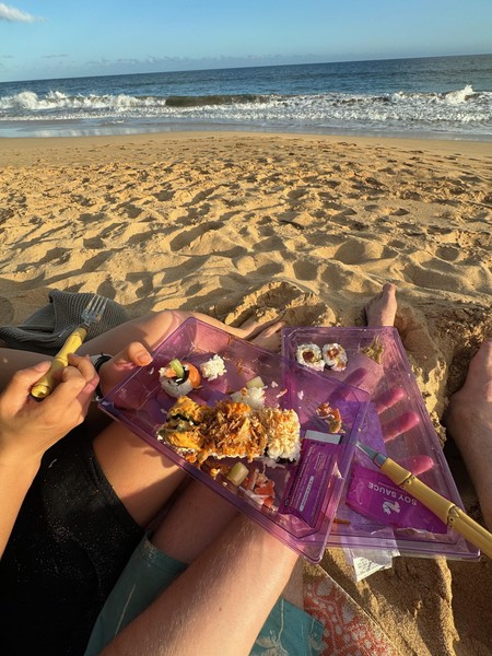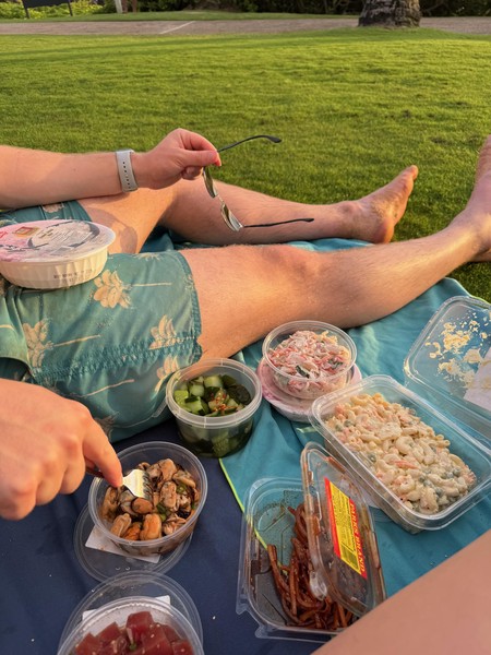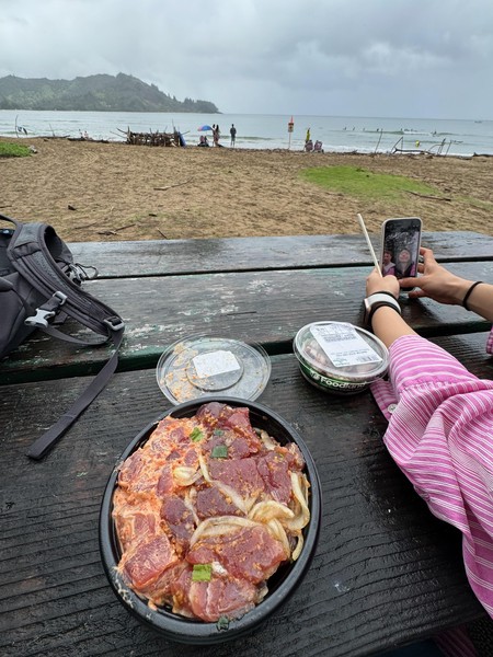 We brought some kalua pork and poke to have a little picnic while watching the waves crash. Went for another swim too.