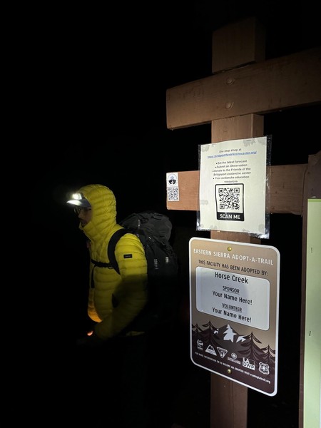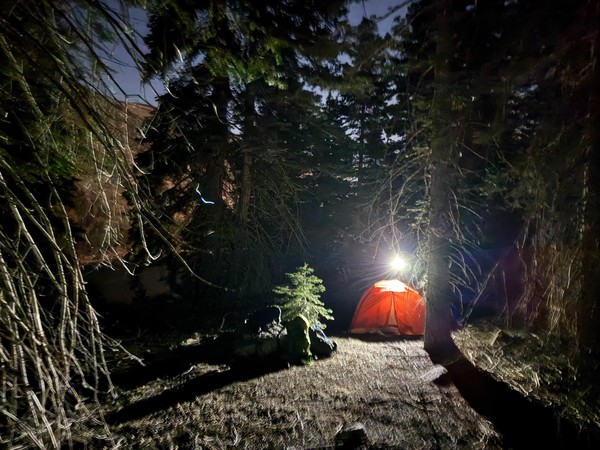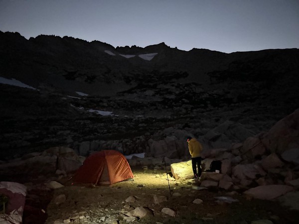 We drove up from the Bay Area just after work on Friday and ended up getting to the trailhead (Horse Camp) in the dark. We hiked a few kilometers with headlamps before calling it a night and setting up the tent.