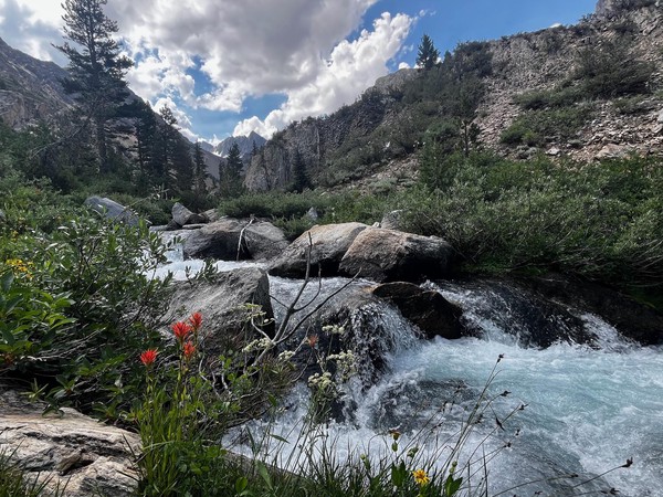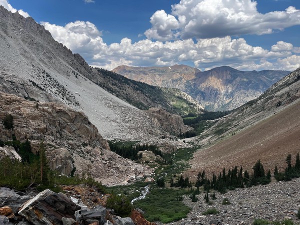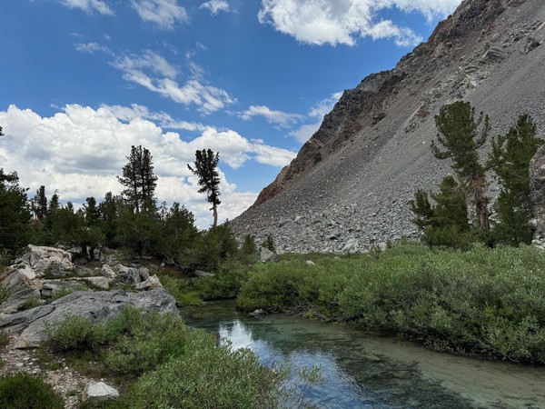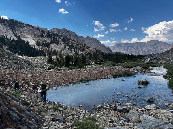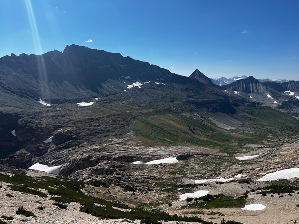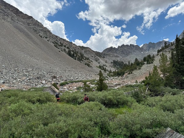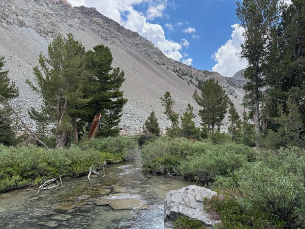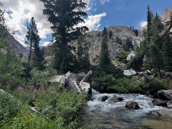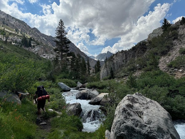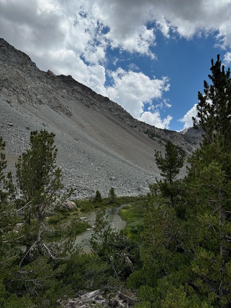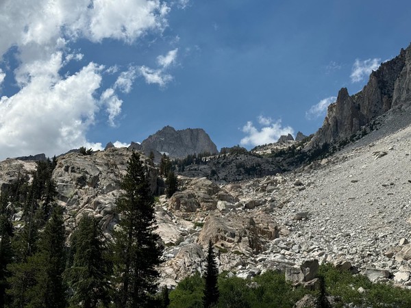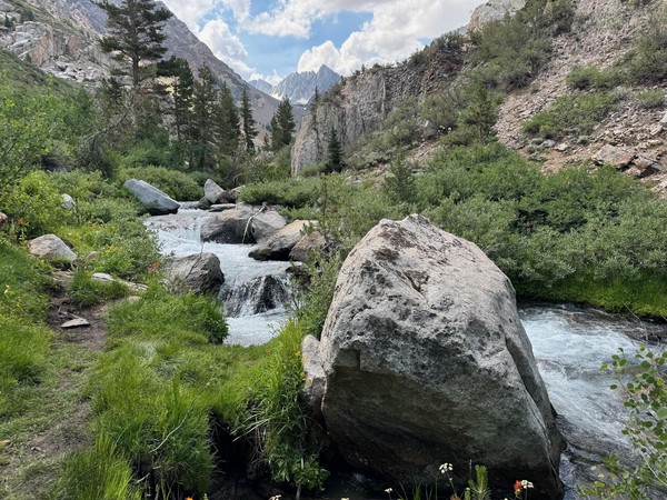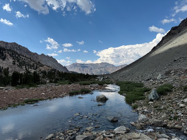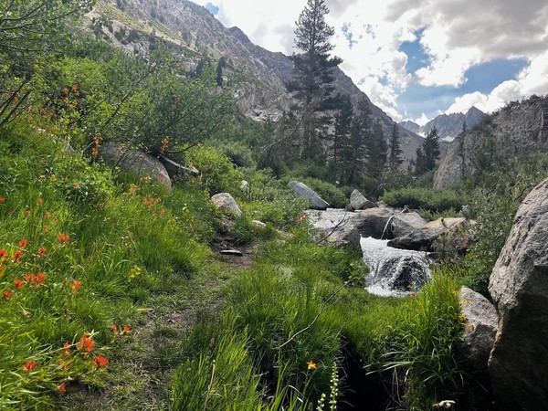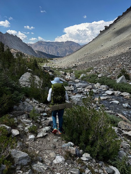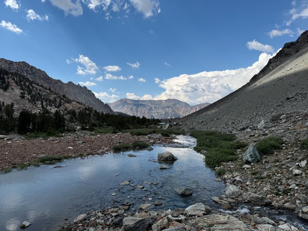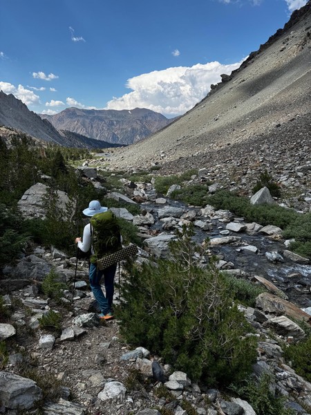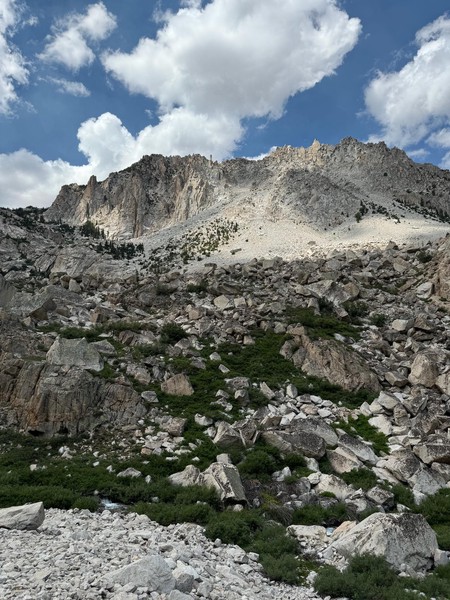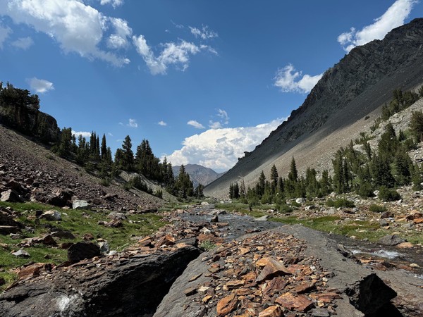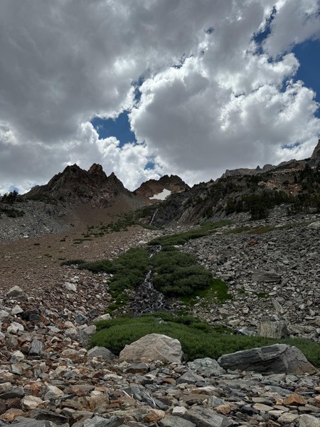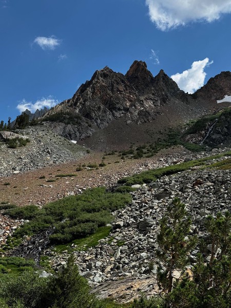 The next day we headed up the trail following the creek towards Matterhorn Peak. The jagged edge peaks were stunning and as we gained elevation the views just got better. There was tons of water available on the trail as it follows Horse Creek all the way. As we worked our way up the valley the trail became less defined and we needed to make our own route at times.