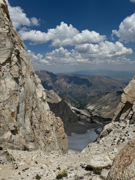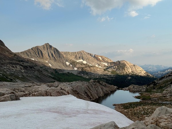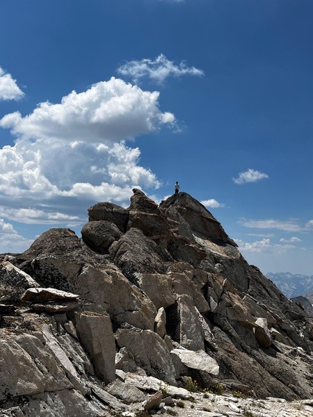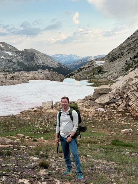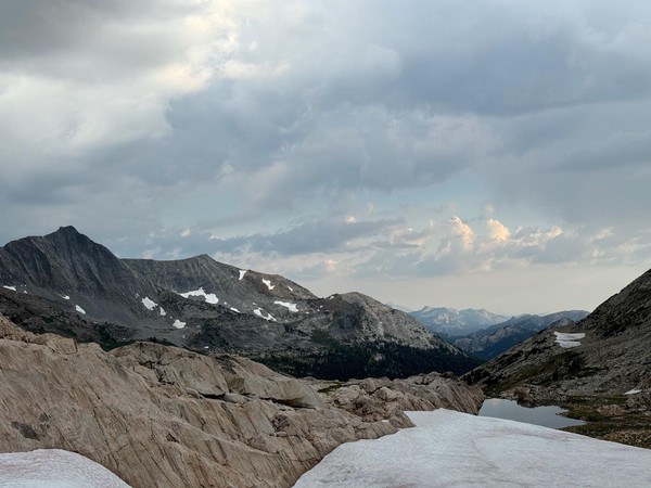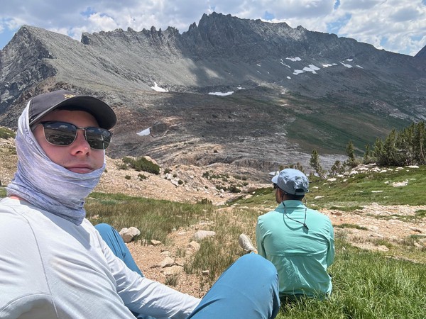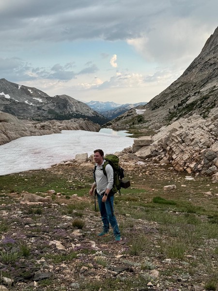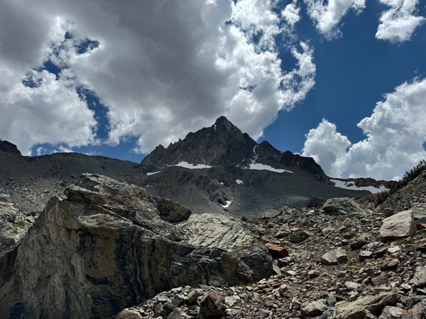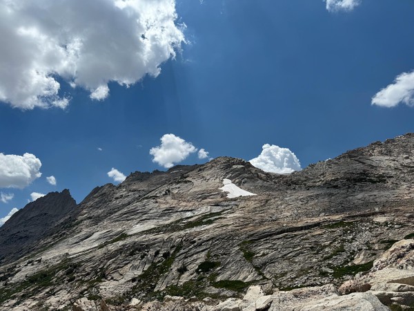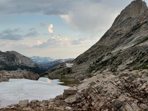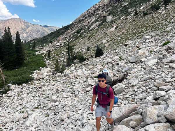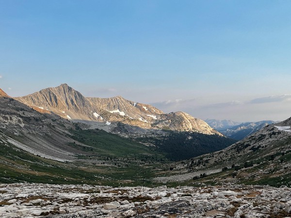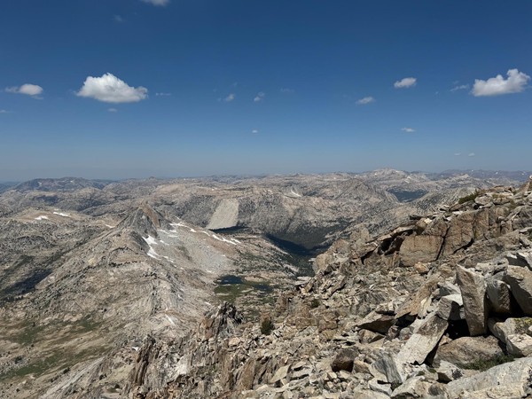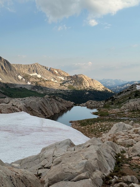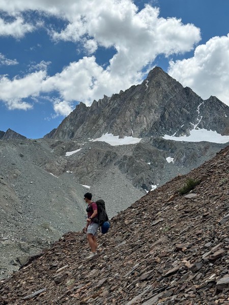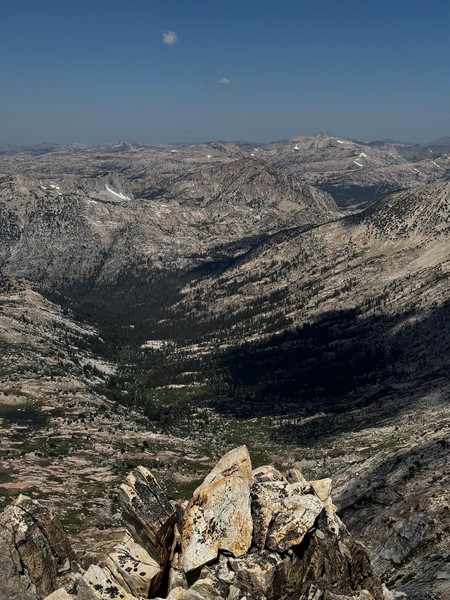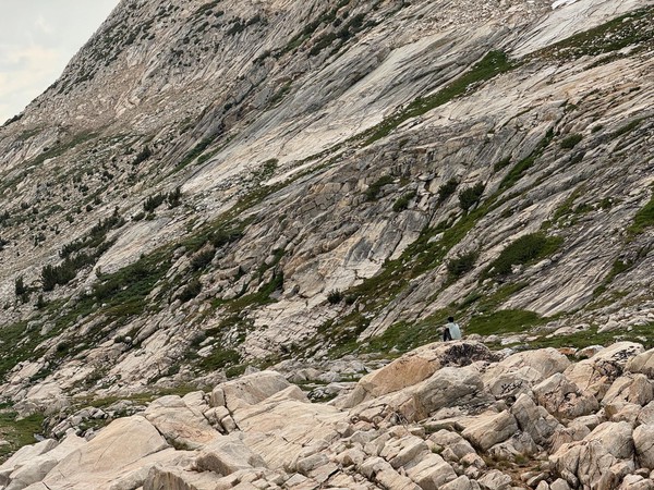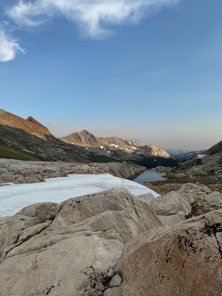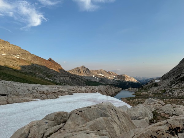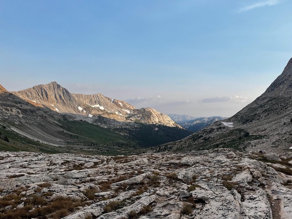Today we were set out to summit Matterhorn peak in the morning and then hike all the way out back to the car. There is no real trail up to the summit and we more had to scrample our way up a scree field towards the top. Looking down the view just got better the further we got up and soon enough we were almost at the top. At their very top there was a more technical section where you had to pull yourself up over a few rocks but overall not too bad. At the top we signed the log book, took a few pictures and then proceeded to head back down.