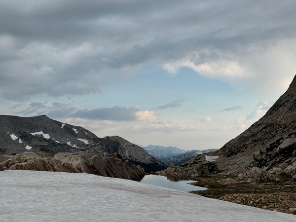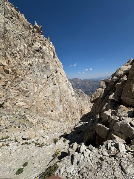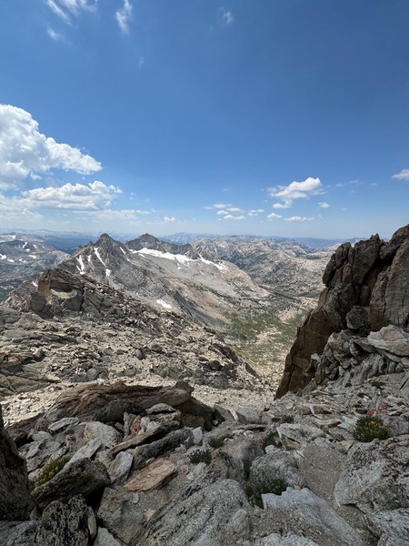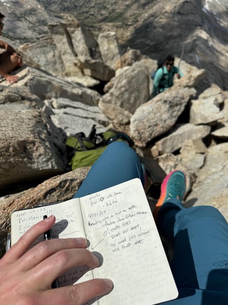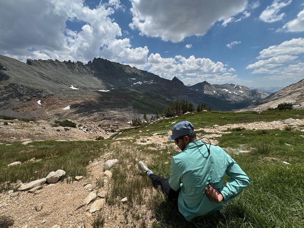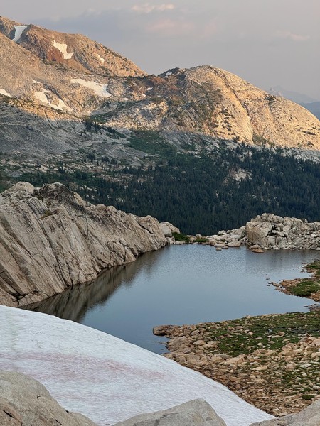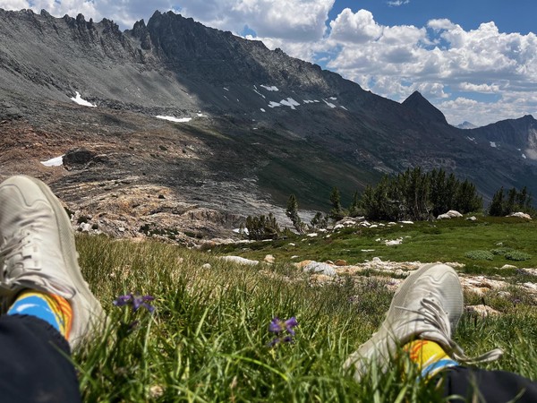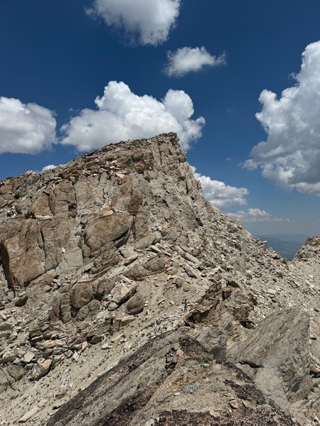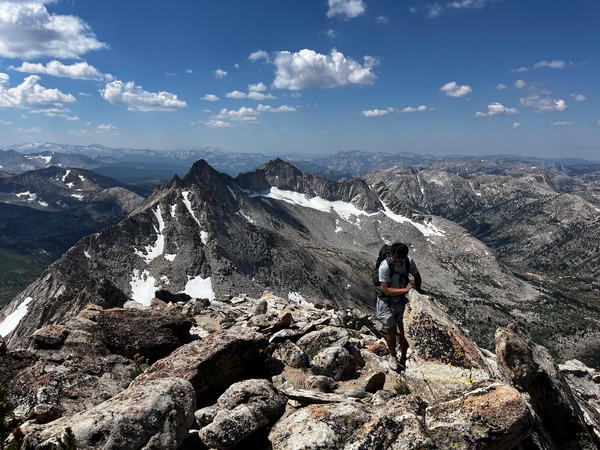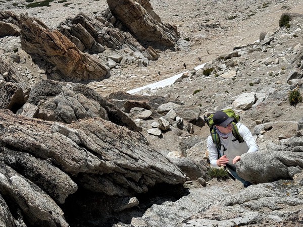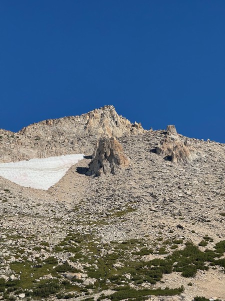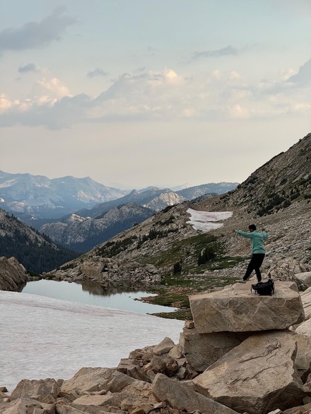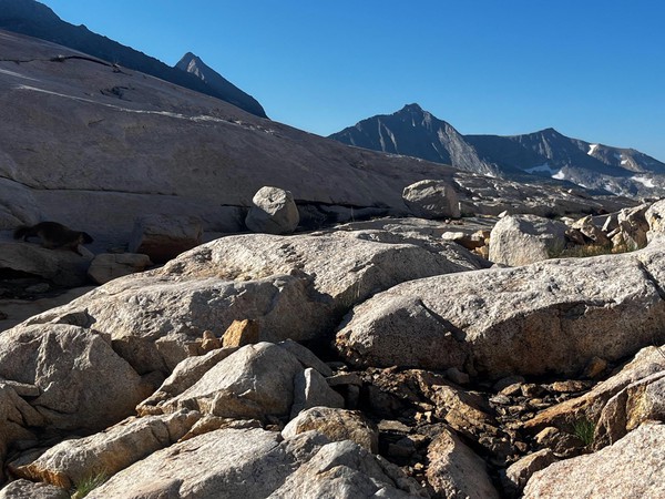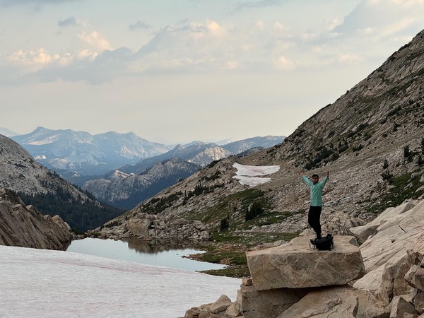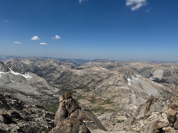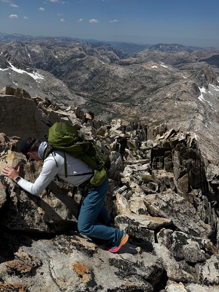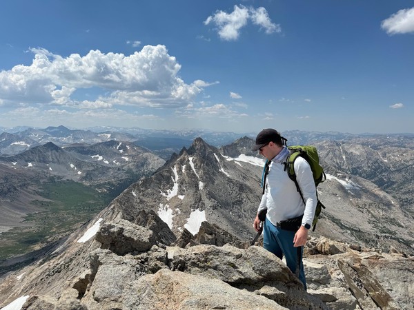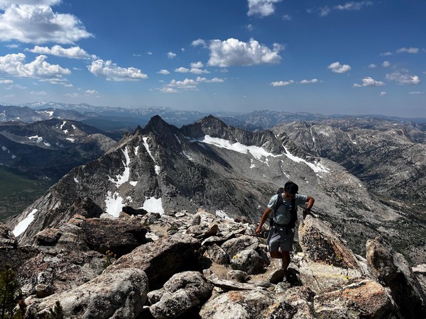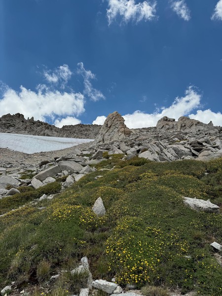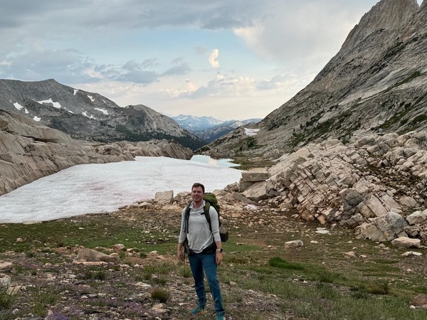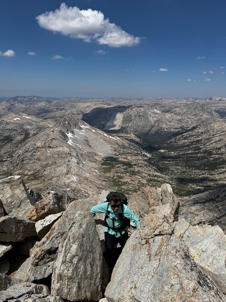 Today we were set out to summit Matterhorn peak in the morning and then hike all the way out back to the car. There is no real trail up to the summit and we more had to scrample our way up a scree field towards the top. Looking down the view just got better the further we got up and soon enough we were almost at the top. At their very top there was a more technical section where you had to pull yourself up over a few rocks but overall not too bad. At the top we signed the log book, took a few pictures and then proceeded to head back down.