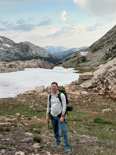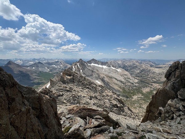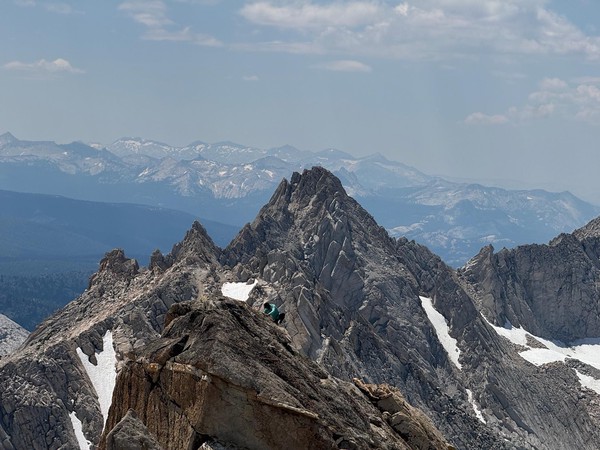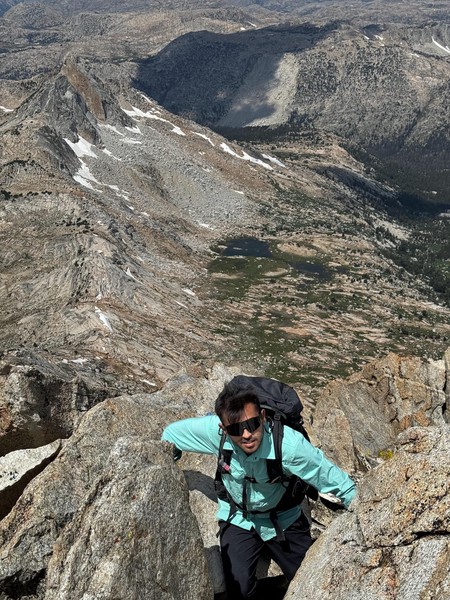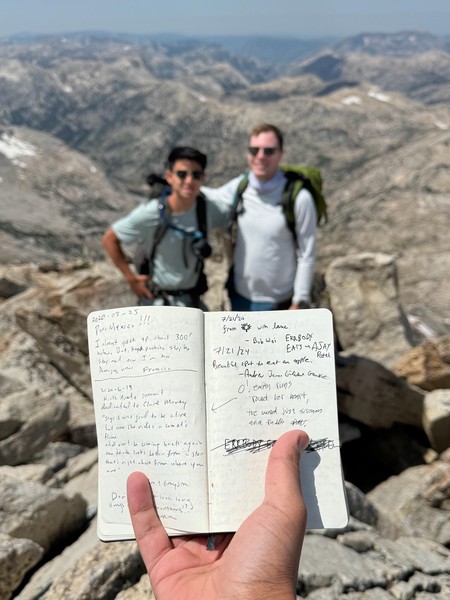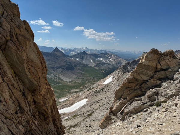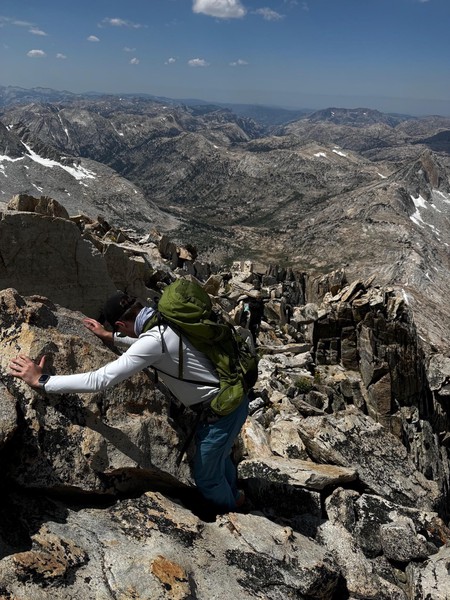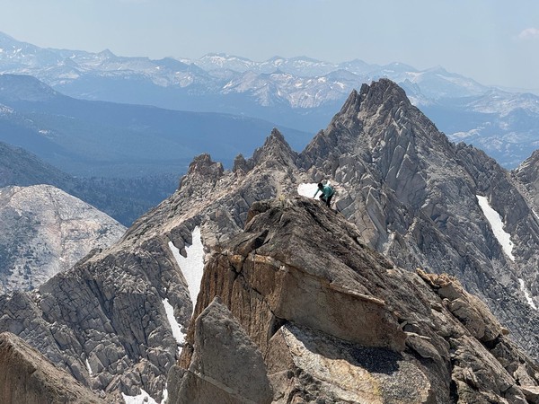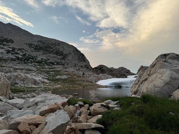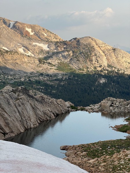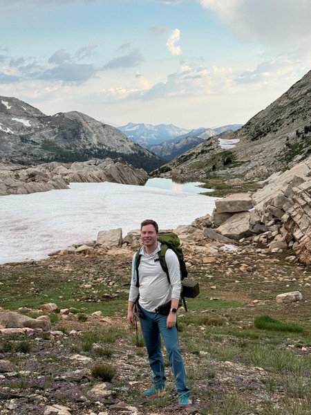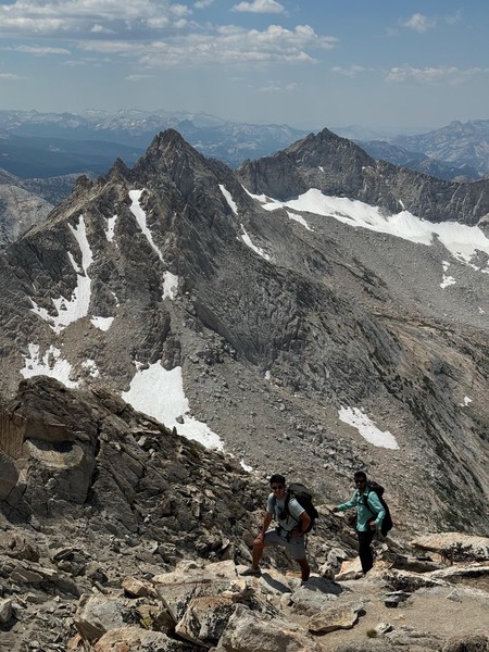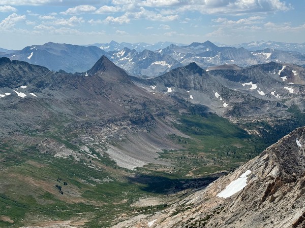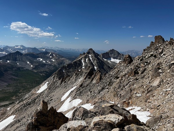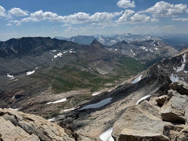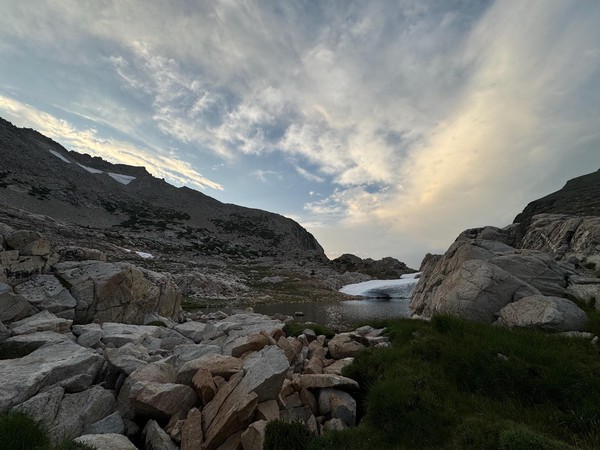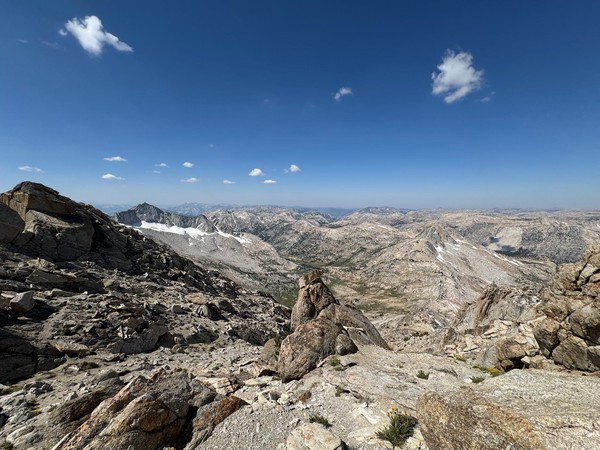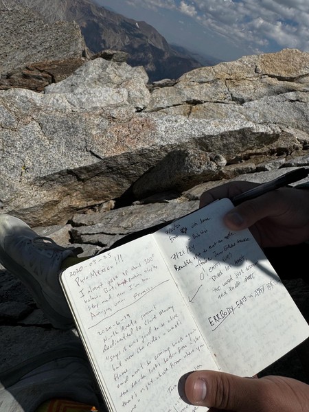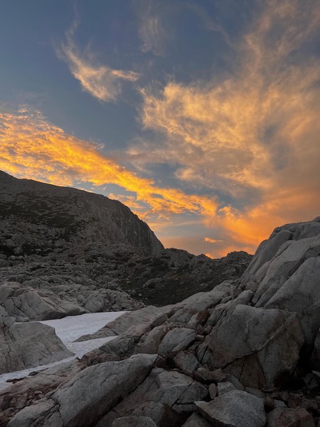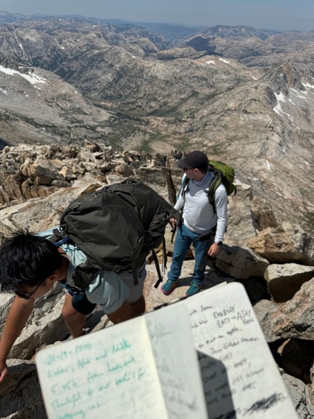 Today we were set out to summit Matterhorn peak in the morning and then hike all the way out back to the car. There is no real trail up to the summit and we more had to scrample our way up a scree field towards the top. Looking down the view just got better the further we got up and soon enough we were almost at the top. At their very top there was a more technical section where you had to pull yourself up over a few rocks but overall not too bad. At the top we signed the log book, took a few pictures and then proceeded to head back down.