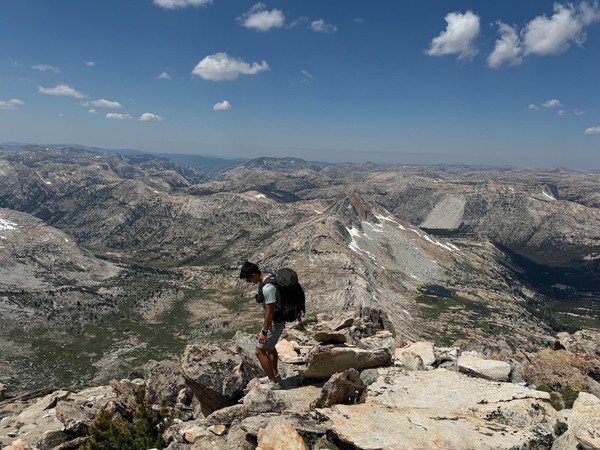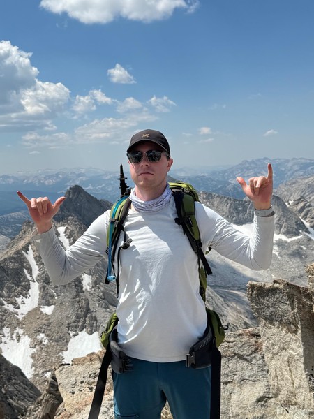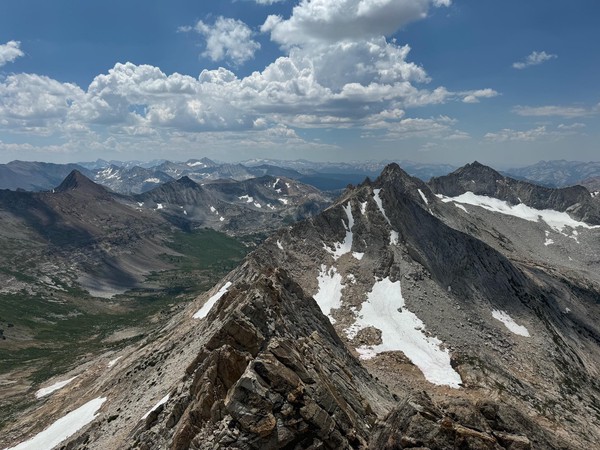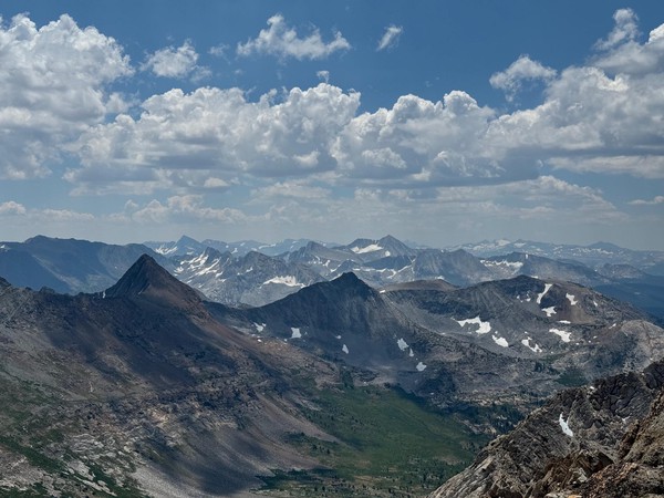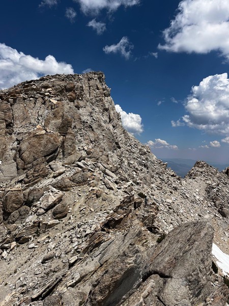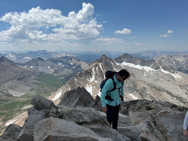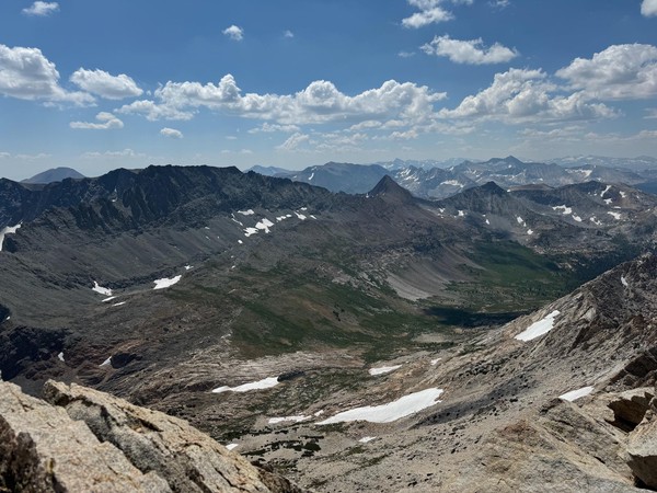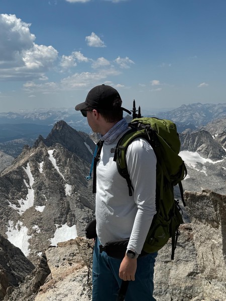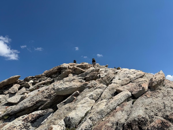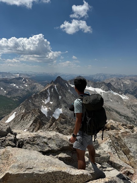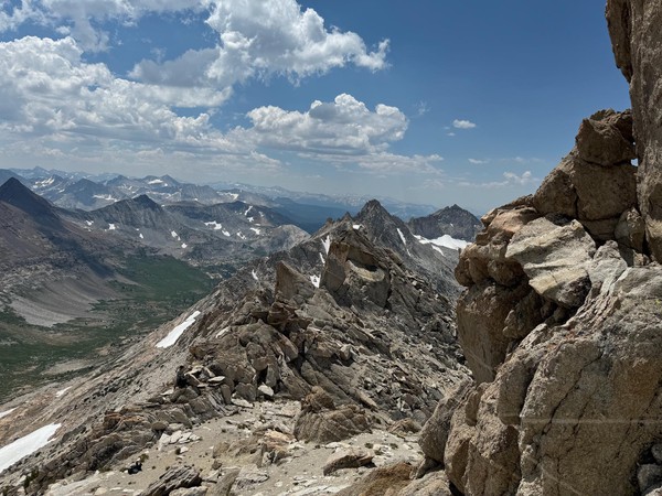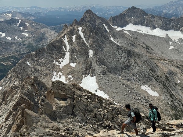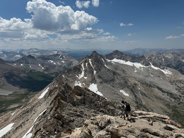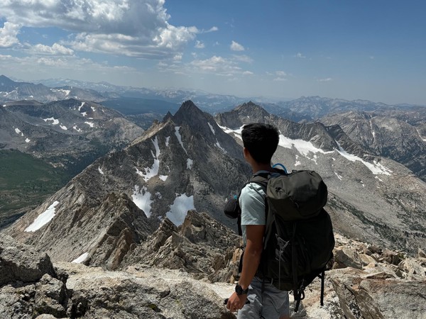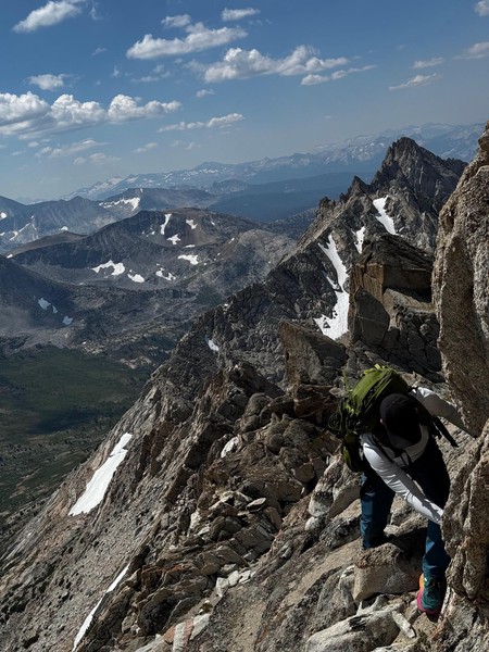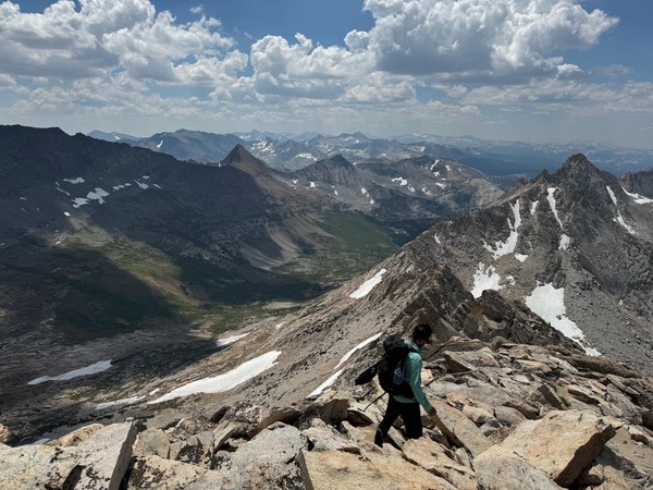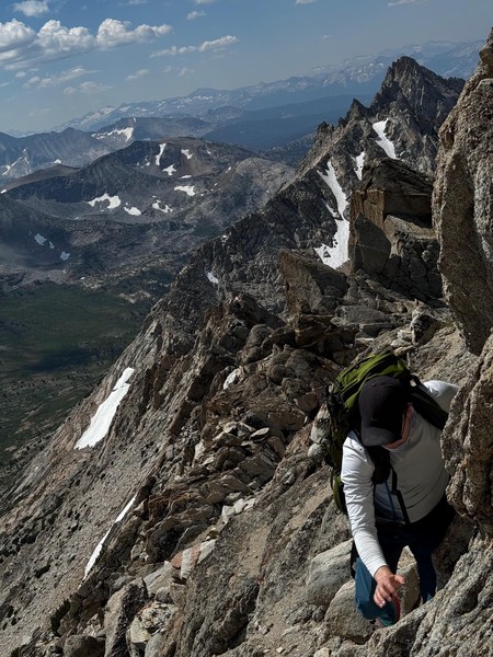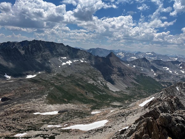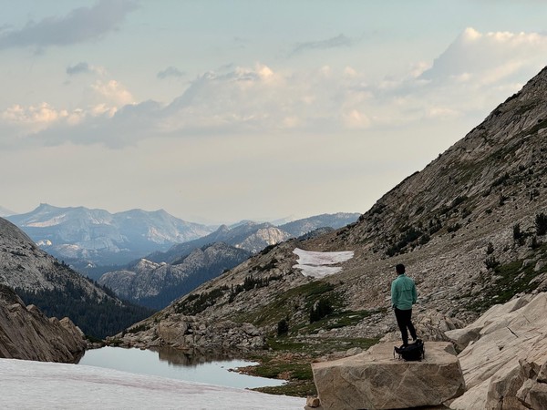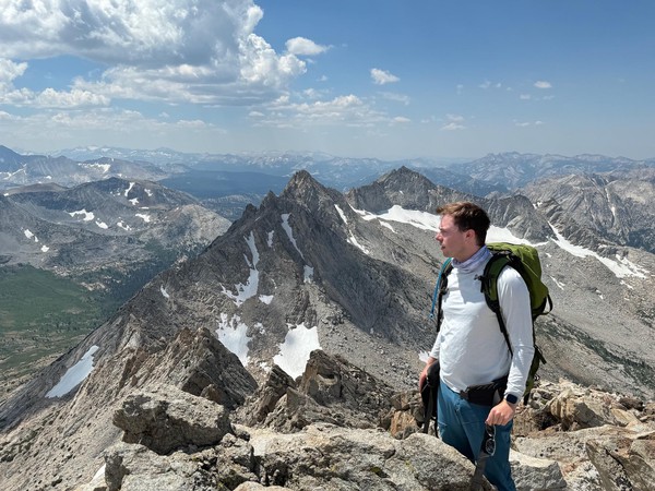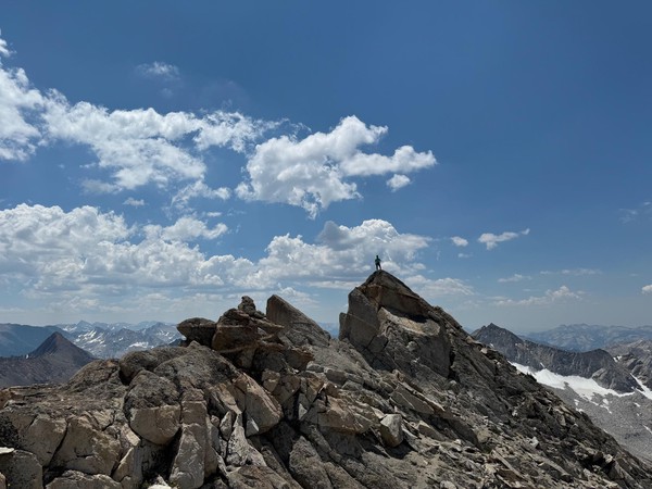 Today we were set out to summit Matterhorn peak in the morning and then hike all the way out back to the car. There is no real trail up to the summit and we more had to scrample our way up a scree field towards the top. Looking down the view just got better the further we got up and soon enough we were almost at the top. At their very top there was a more technical section where you had to pull yourself up over a few rocks but overall not too bad. At the top we signed the log book, took a few pictures and then proceeded to head back down.