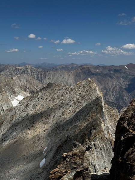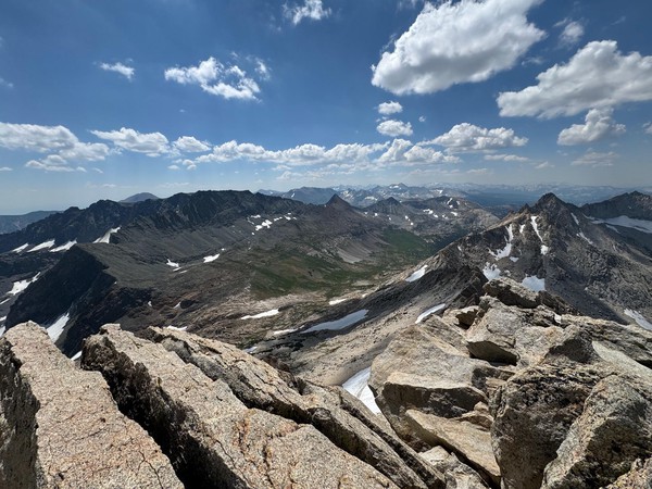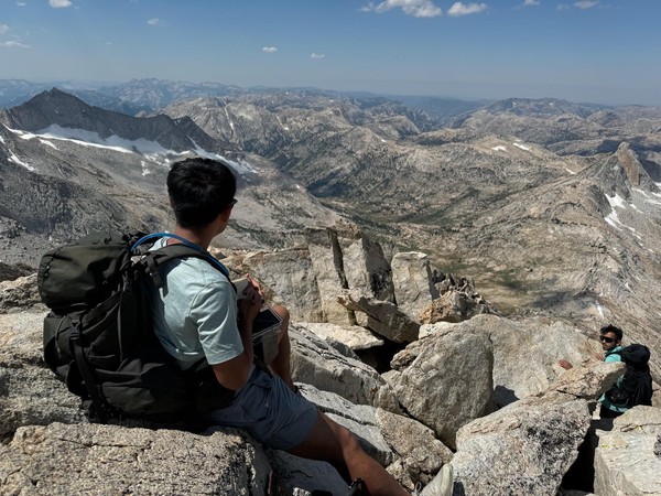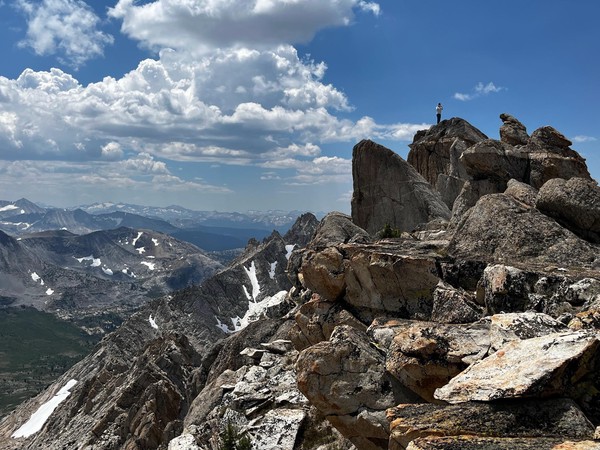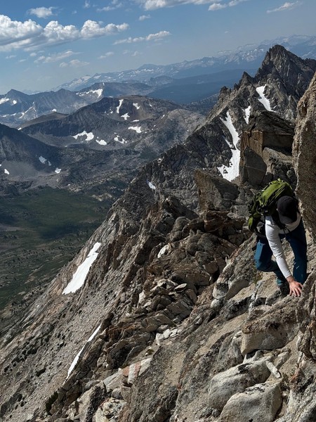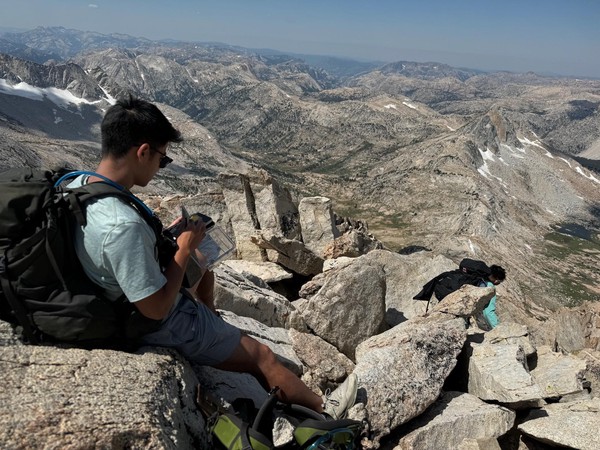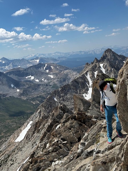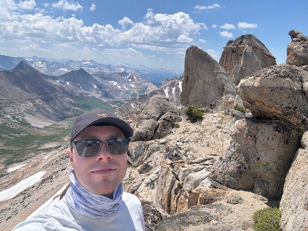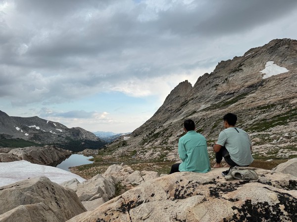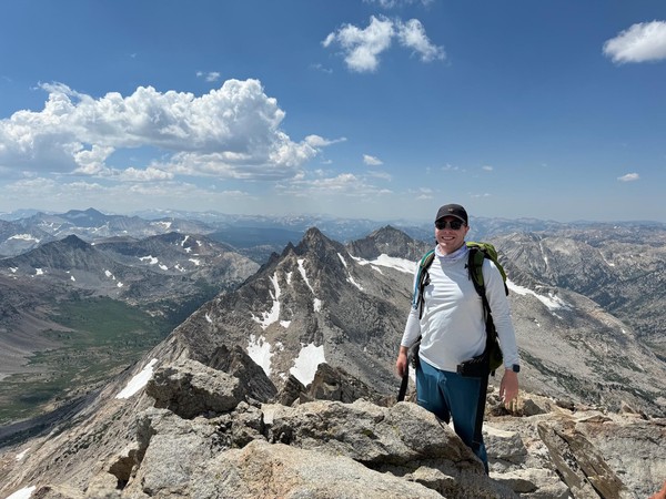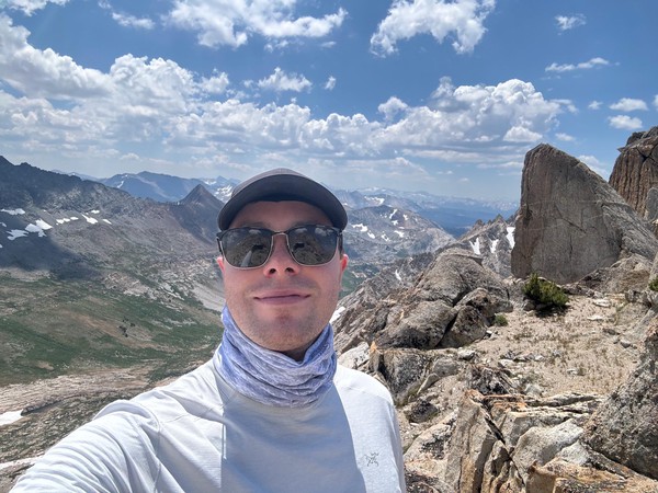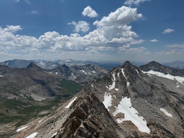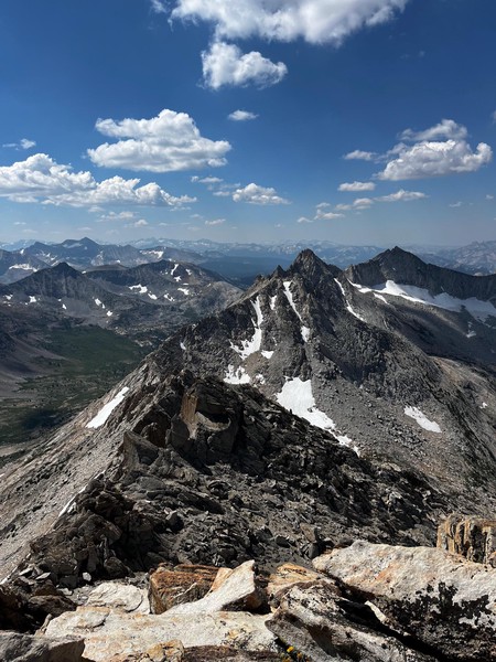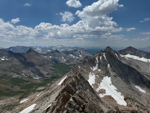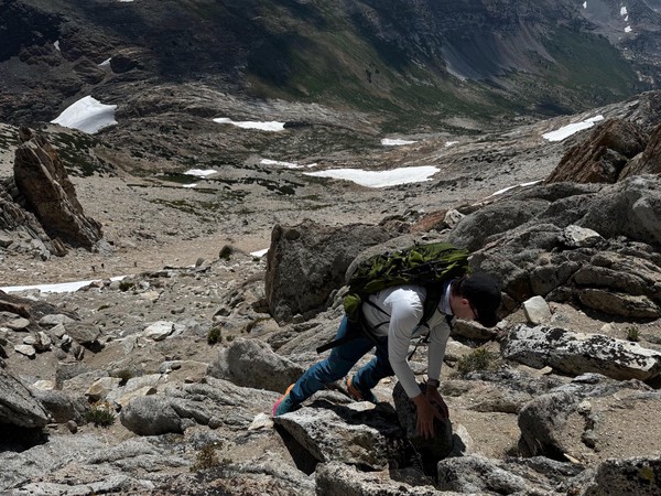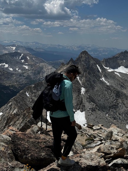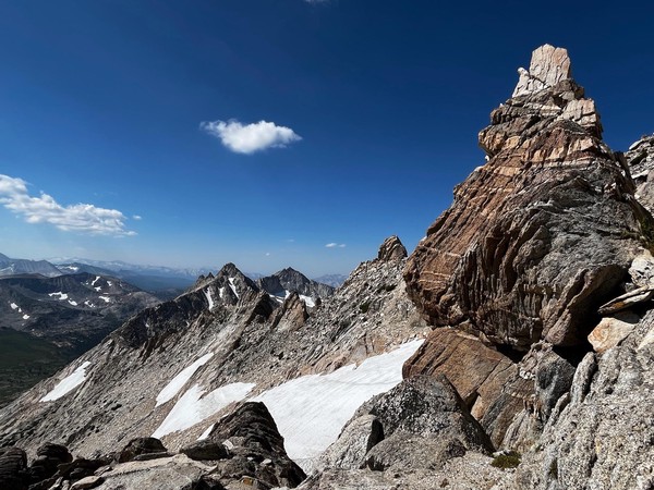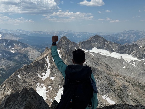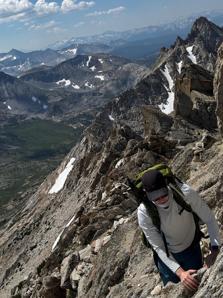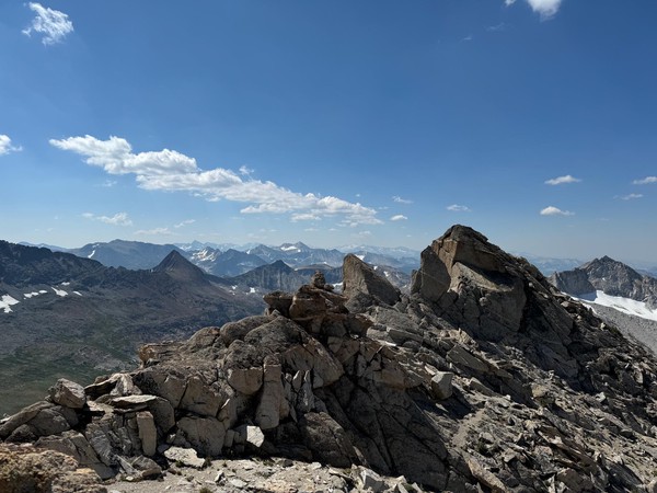 Today we were set out to summit Matterhorn peak in the morning and then hike all the way out back to the car. There is no real trail up to the summit and we more had to scrample our way up a scree field towards the top. Looking down the view just got better the further we got up and soon enough we were almost at the top. At their very top there was a more technical section where you had to pull yourself up over a few rocks but overall not too bad. At the top we signed the log book, took a few pictures and then proceeded to head back down.