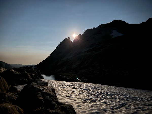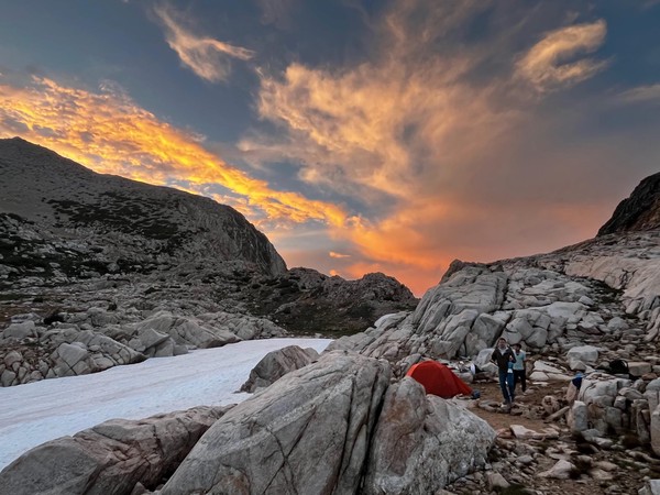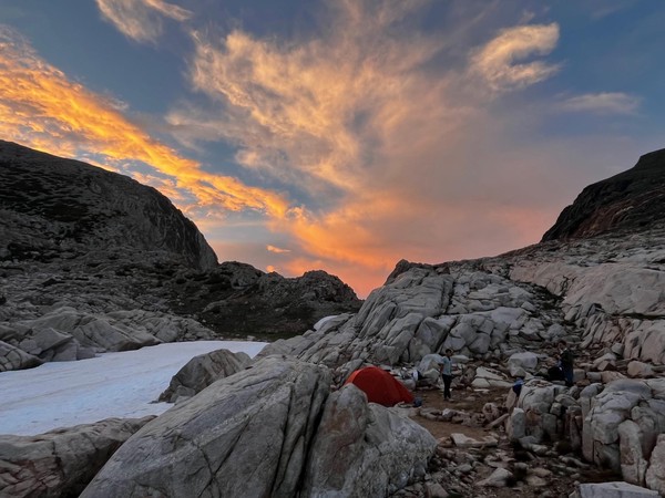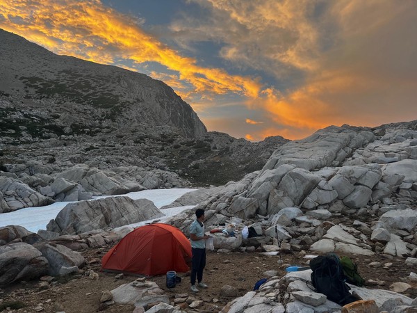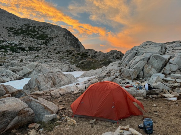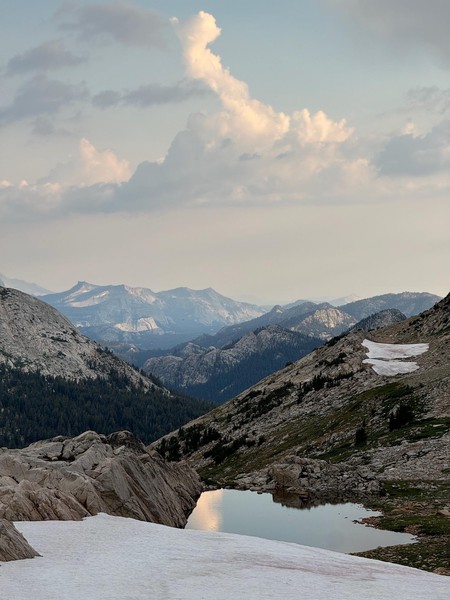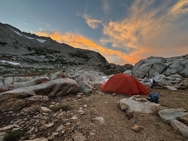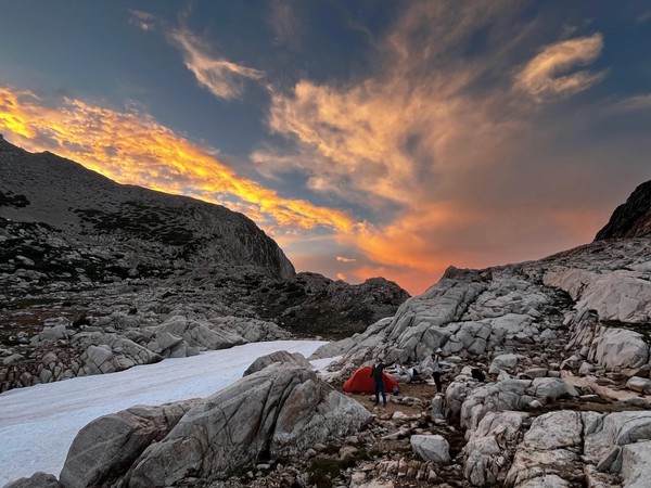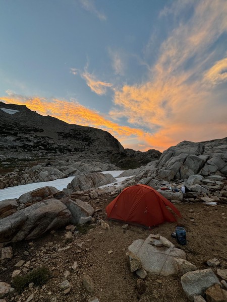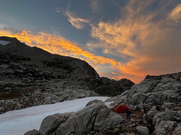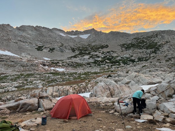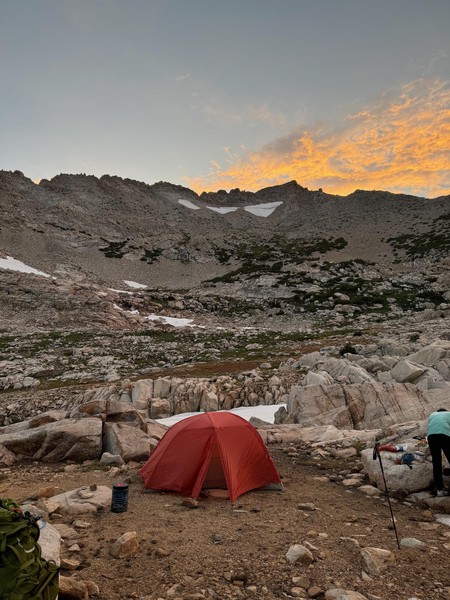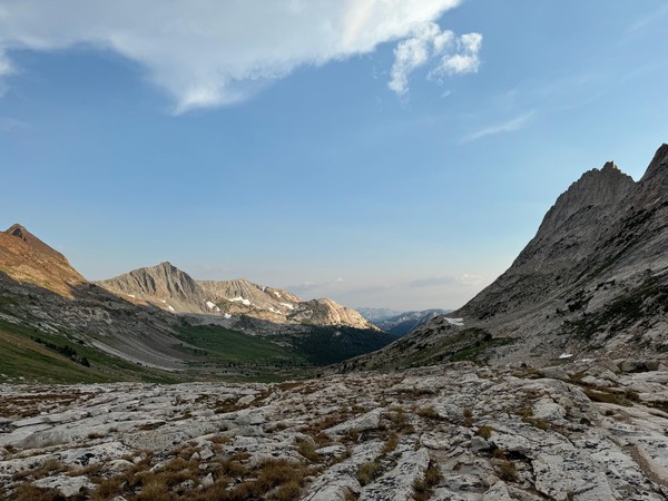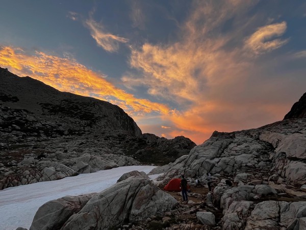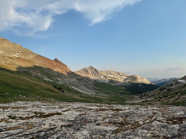 Once the rain stopped we finished up over the pass which opened up into a massive valley to the south. The sun was starting to set over the valley and we took a break to watch the sunset before finding a place to setup the tent.
