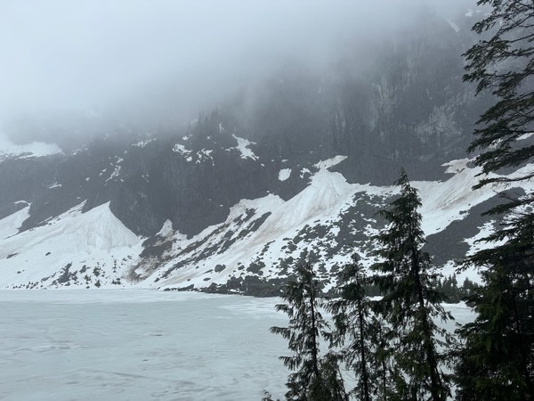 Saturday was a big snow day but there was still a dwindling base from the previous days of warm weather. We skied the morning and then I went for a run along the river afterwards.