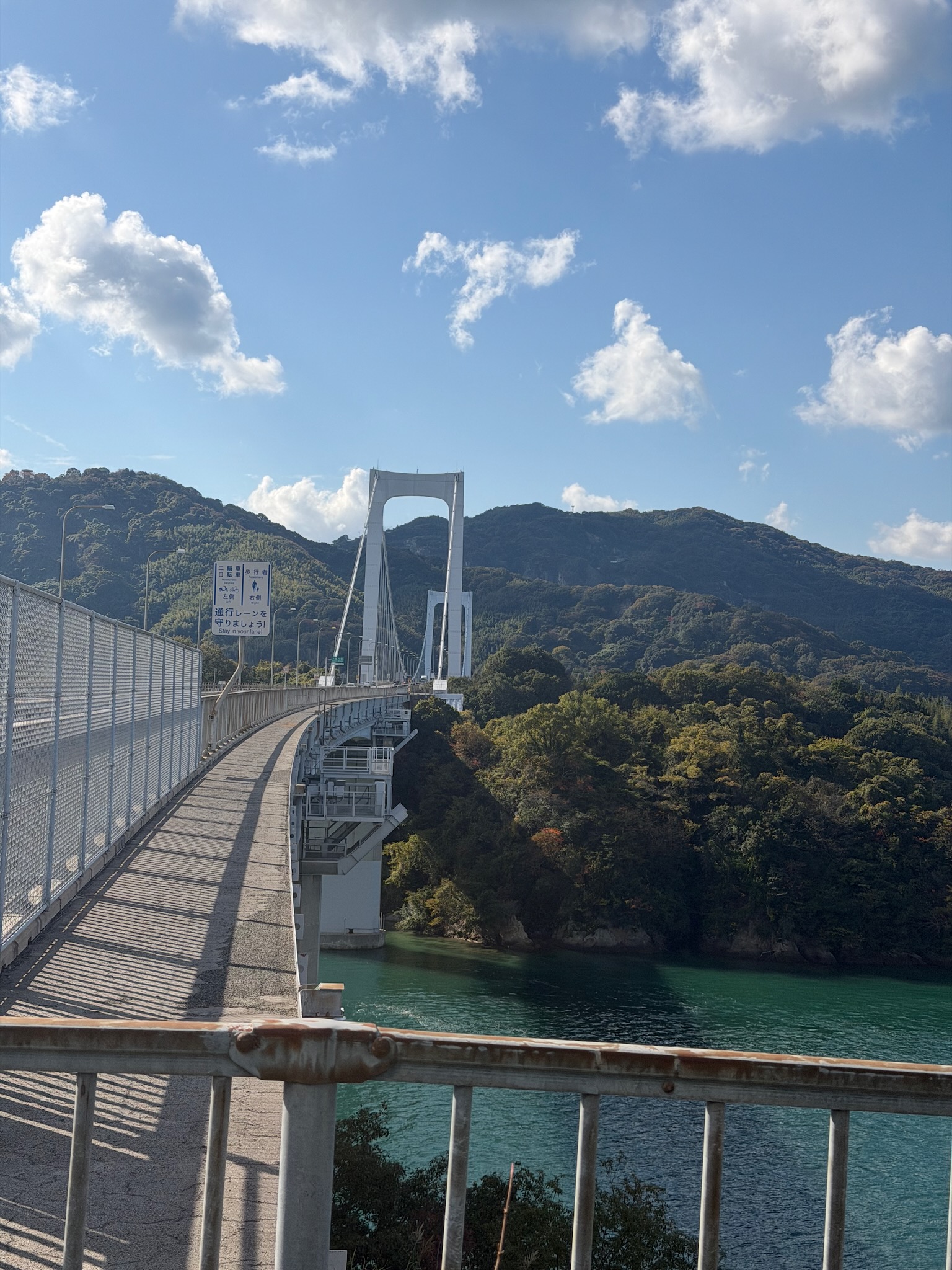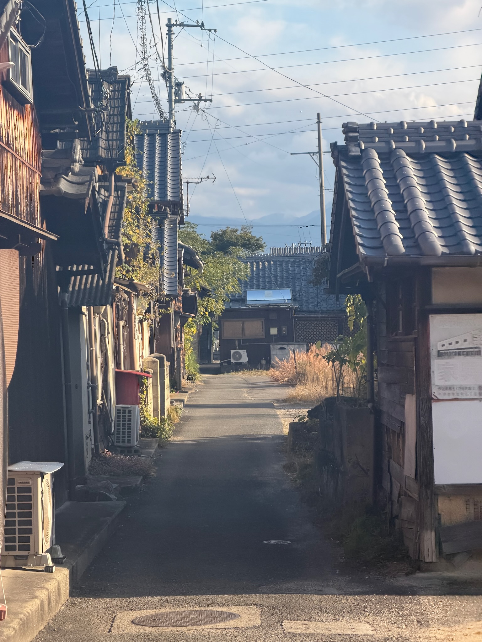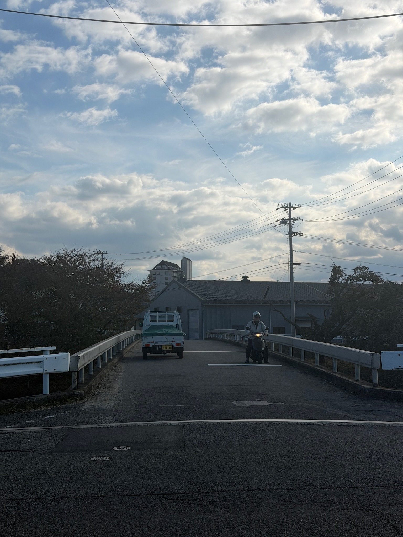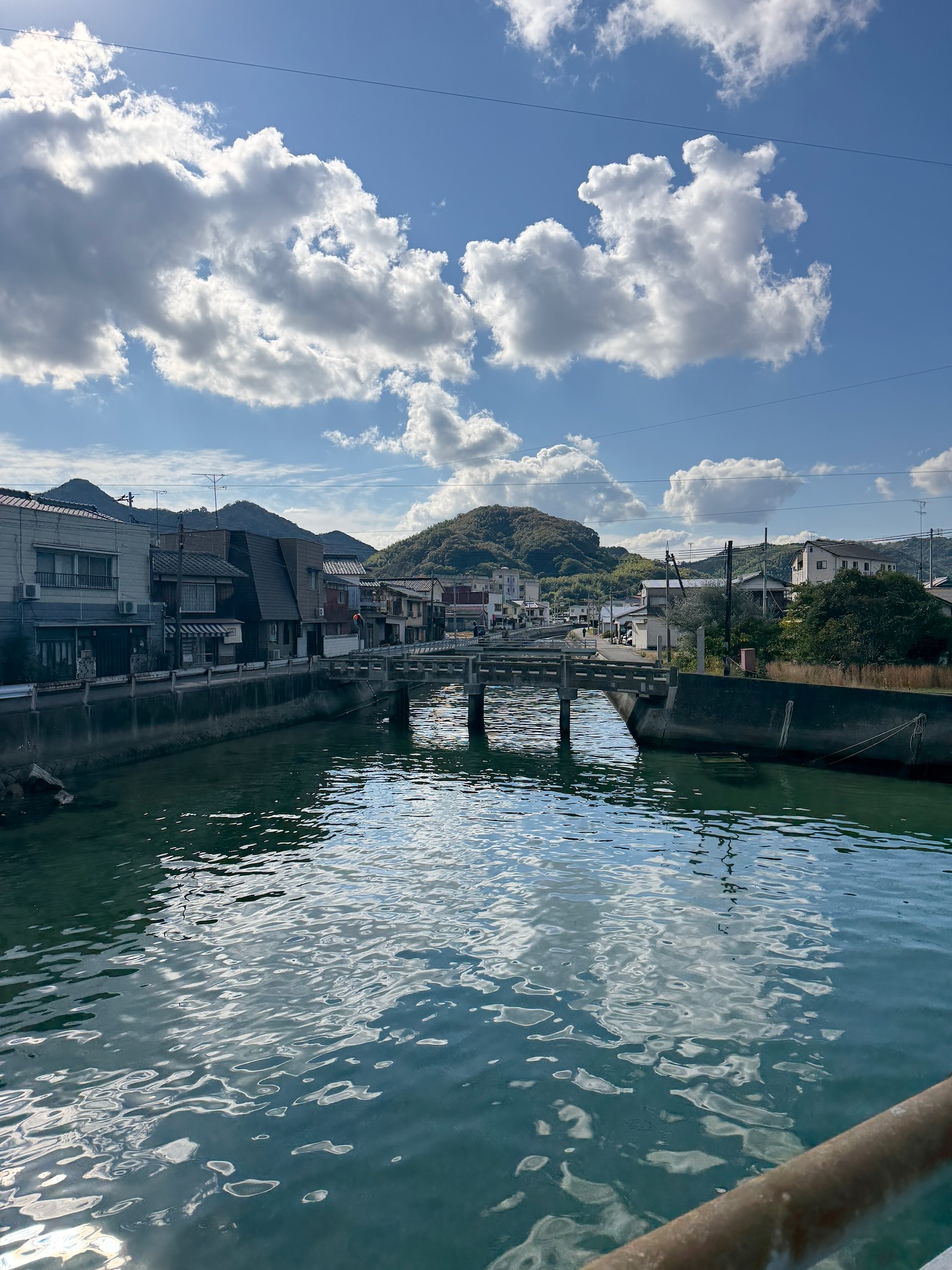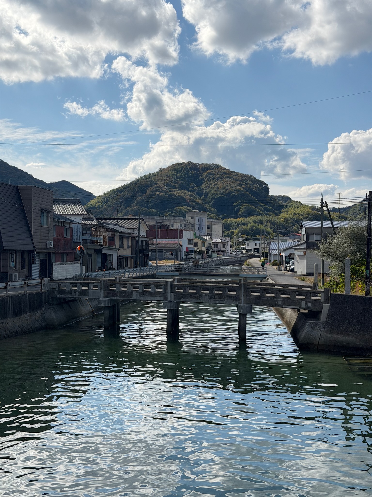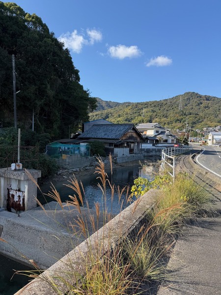The biking infrastructure was great on the Shimanami Kaido. All the bridges had gradual curved inclines up to them just for bikes, with some of them even spiraled at least twenty feet in the air. The views between the islands were so pretty it was almost too much to take in while trying to ride my bike straight over the bridge. The descents down were really fun too, winding through a sort of trench with the autumn canopy of leaves overhead. Once we reached Imabari, the end of the Shimanami Kaido, the bike infrastructure quickly disappeared. The drivers were super respectful of bikers though, and I never felt like I was going to get hit. After that we were on a mix of regular and small country roads. The smaller side roads were much nicer but usually reconnected with the main road every few kilometres. We popped down the side streets of the small towns and took our time enjoying the traditional Japanese houses.