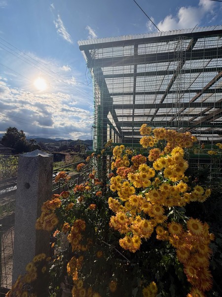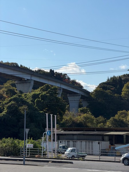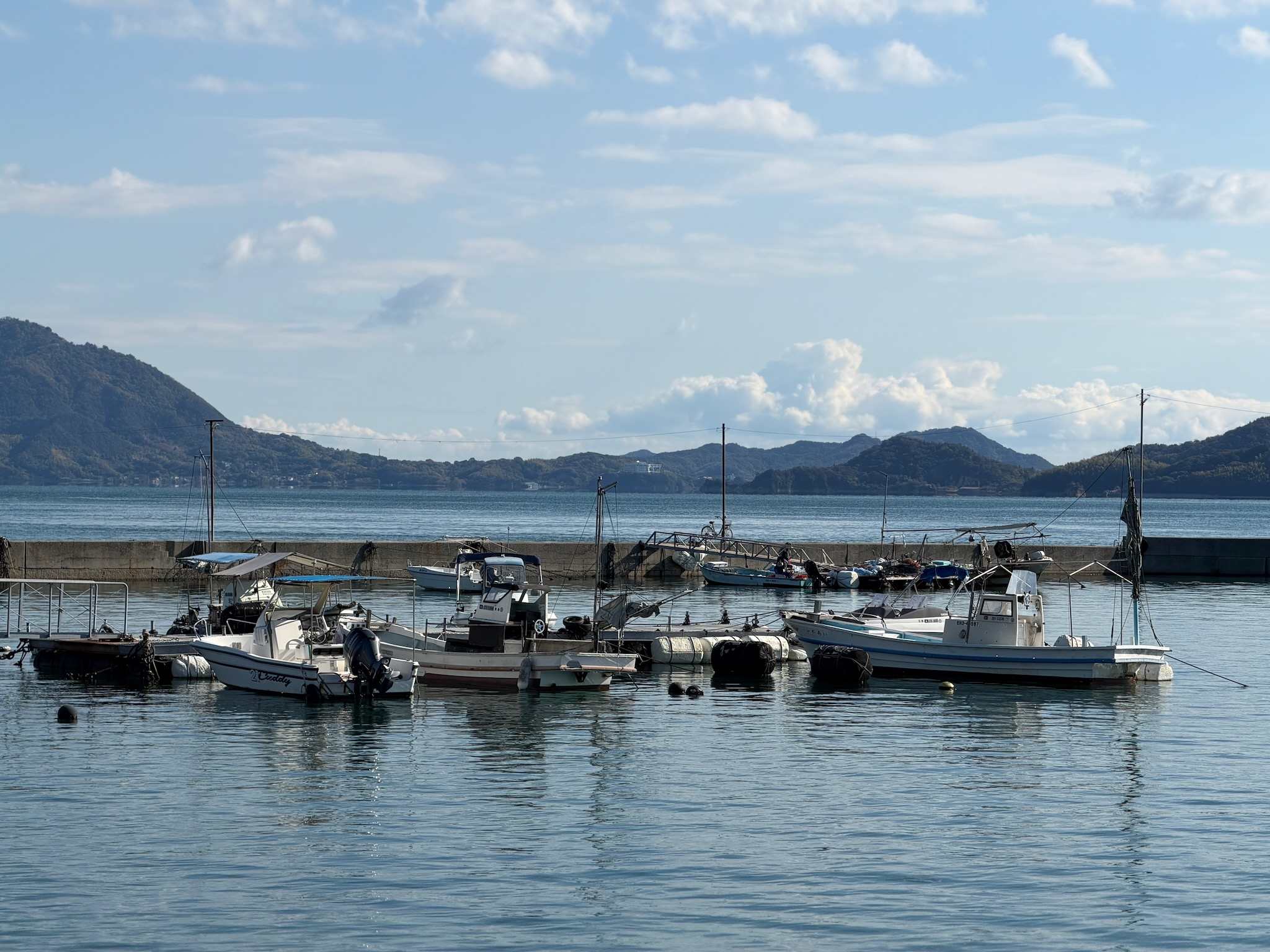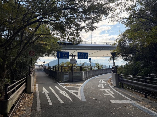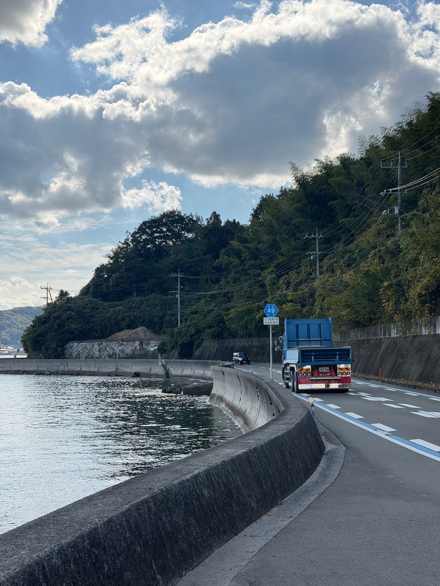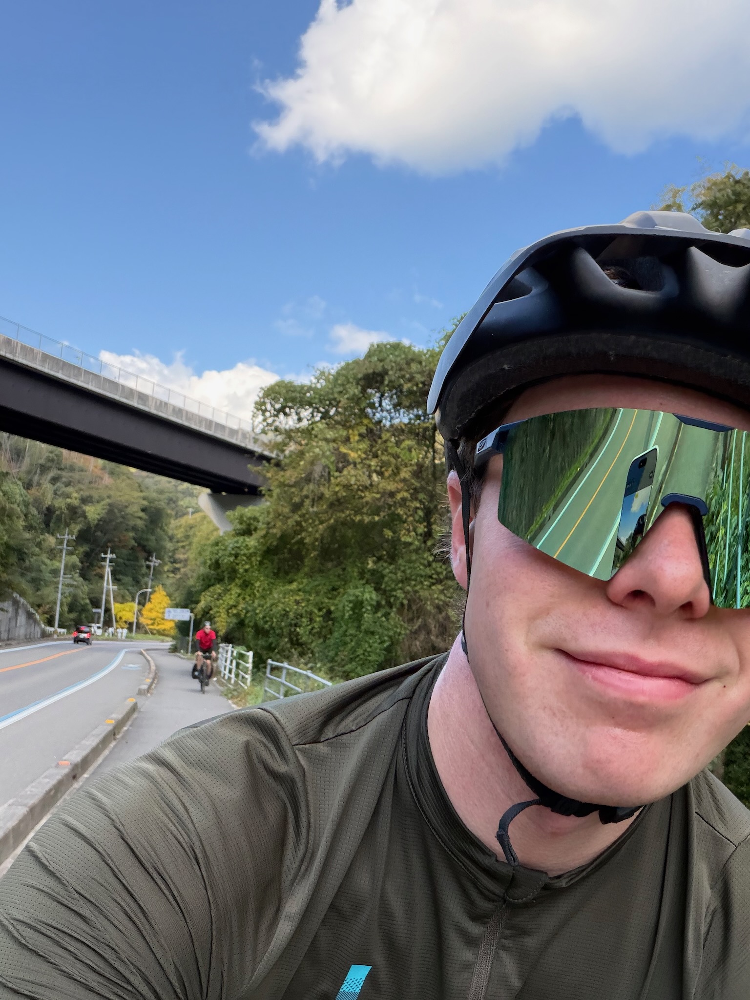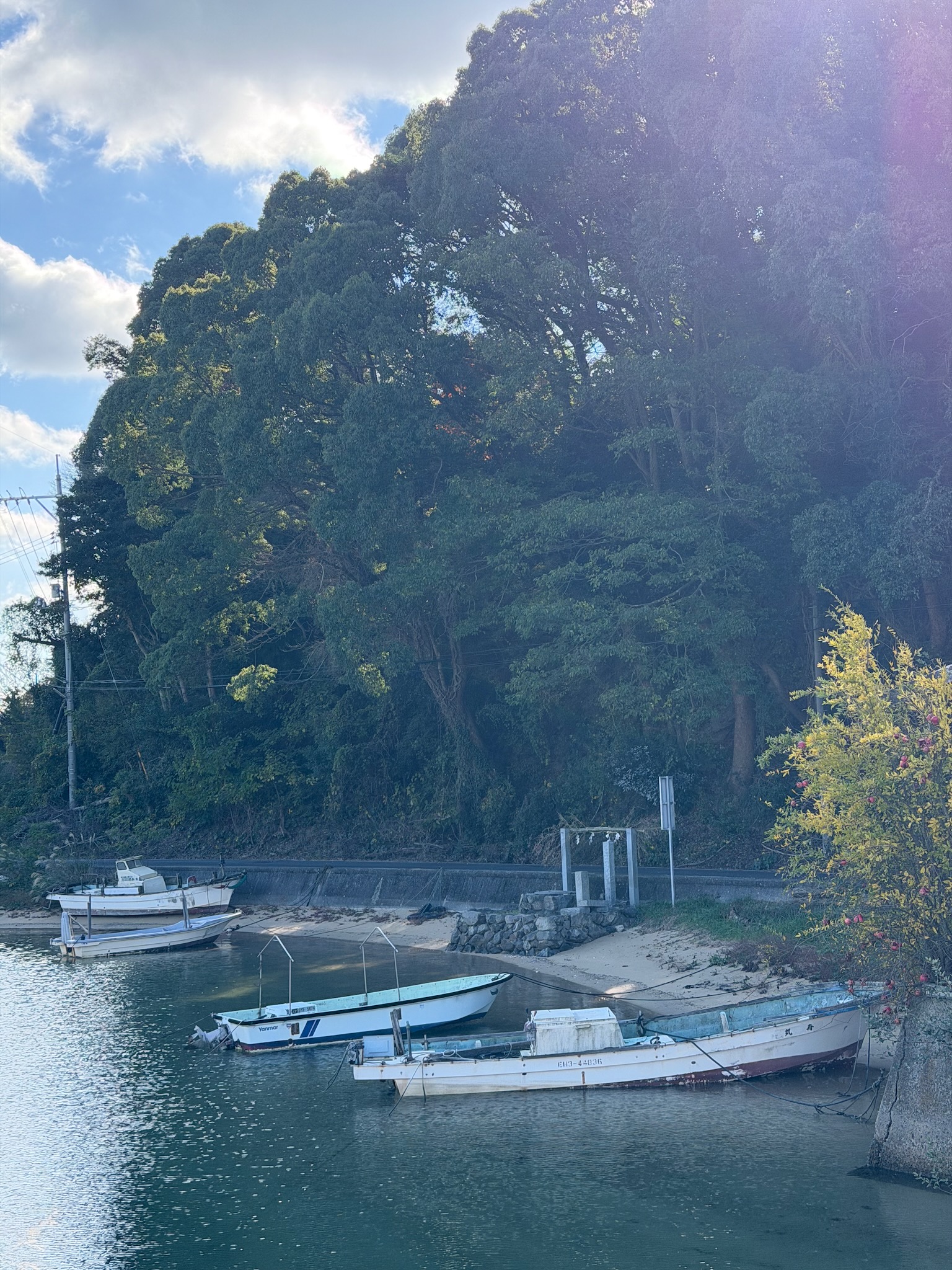 The biking infrastructure was great on the Shimanami Kaido. All the bridges had gradual curved inclines up to them just for bikes, with some of them even spiraled at least twenty feet in the air. The views between the islands were so pretty it was almost too much to take in while trying to ride my bike straight over the bridge. The descents down were really fun too, winding through a sort of trench with the autumn canopy of leaves overhead. Once we reached Imabari, the end of the Shimanami Kaido, the bike infrastructure quickly disappeared. The drivers were super respectful of bikers though, and I never felt like I was going to get hit. After that we were on a mix of regular and small country roads. The smaller side roads were much nicer but usually reconnected with the main road every few kilometres. We popped down the side streets of the small towns and took our time enjoying the traditional Japanese houses.
