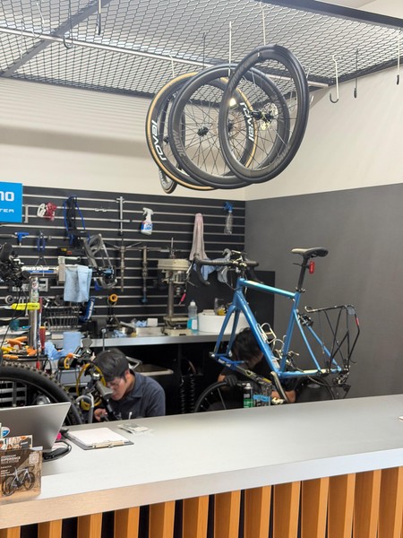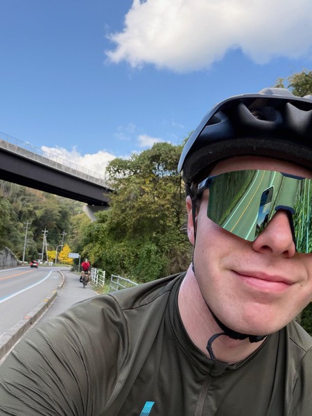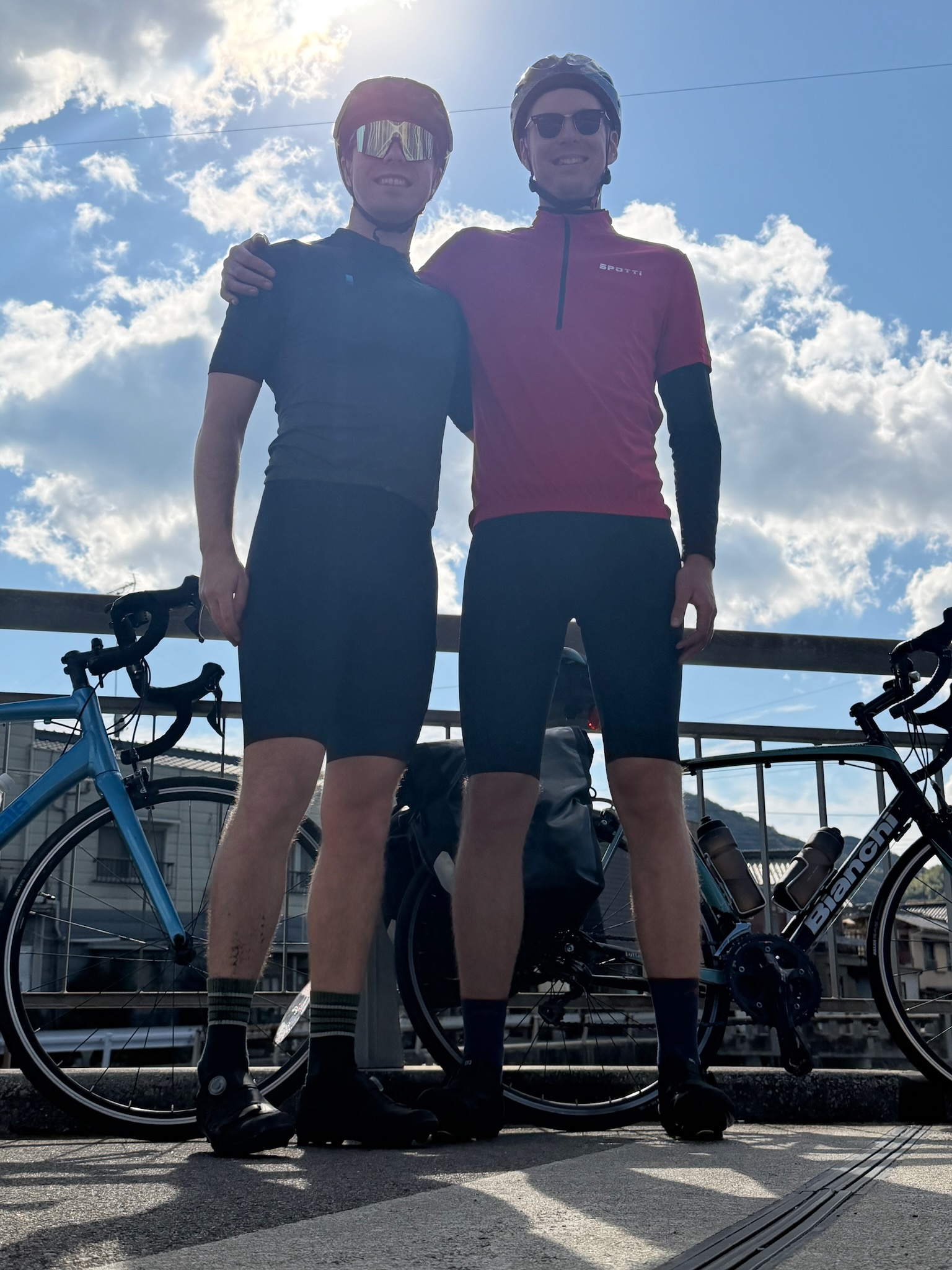 We arrived in Saijo around 4 p.m. and went to a local bike shop, B-shop OCHI. The owner was awesome and was able to fix the bike. We ended up chatting with him for a while after and showed him our plans for tomorrow. He was a bit surprised we were going all the way up to the UFO with panniers on our bikes. He was super helpful and confirmed the route was still open and would be for a few more days before it closed for snow. Looking at the map tougether he pointed at the first section, “hard”, then the middle section “hard hard”, followed by the final climb as “hard hard hard”. Tom must have been thinking, what have I got myself into.
