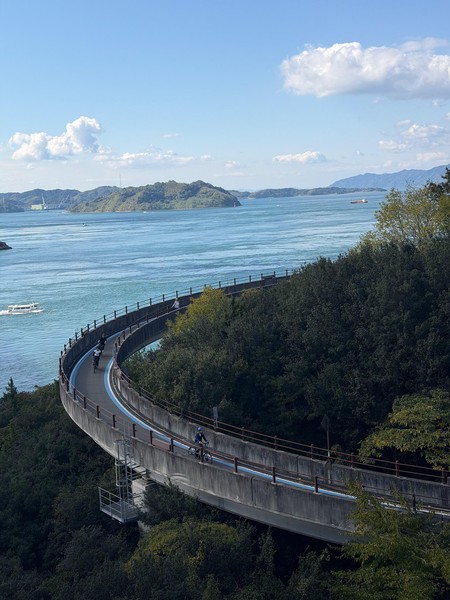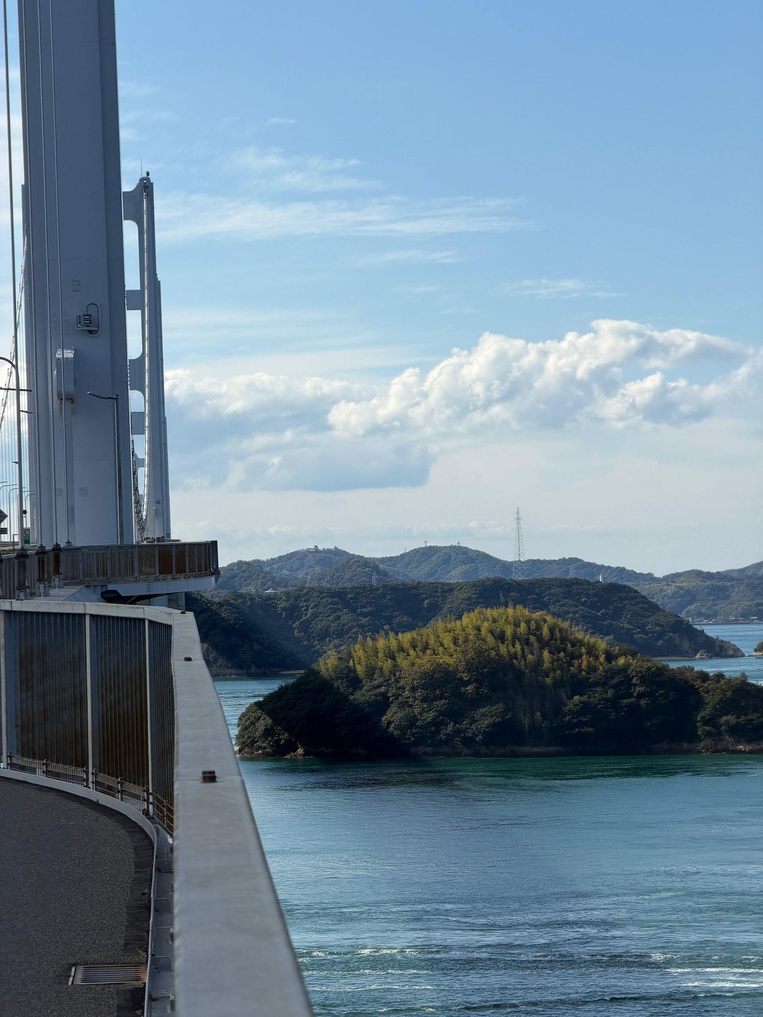 The rest of the Shimanami Kaido was gorgeous. I was surprised how tropical it felt as we cycled past lots of orange trees, mixed in with small factories and shipping yards along the way. It was pretty easy riding. We did make a few “shortcuts” that ended up with some steep gravel pitches that I almost had to walk my bike up.