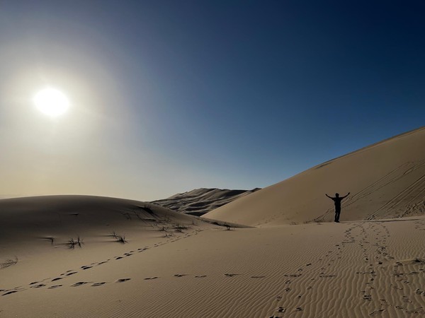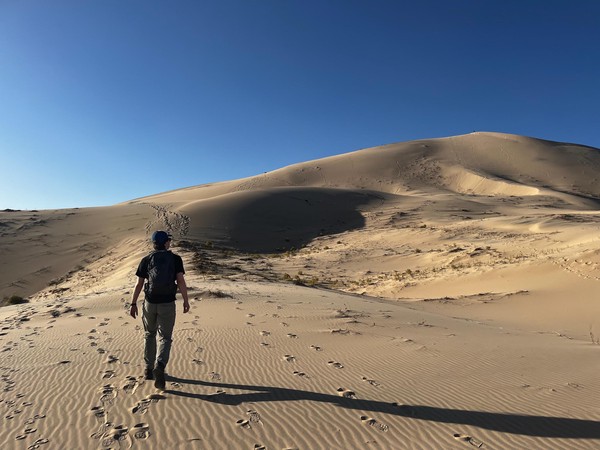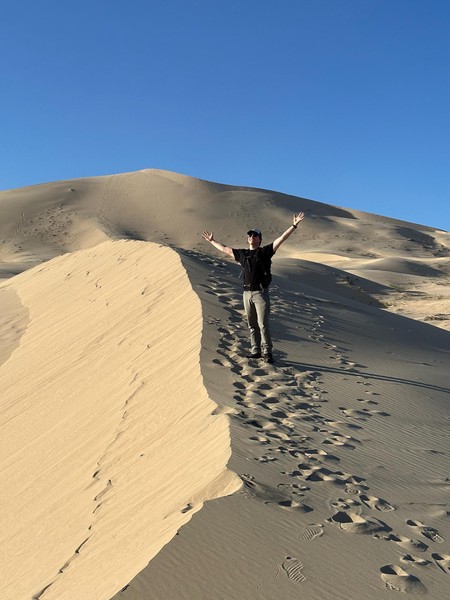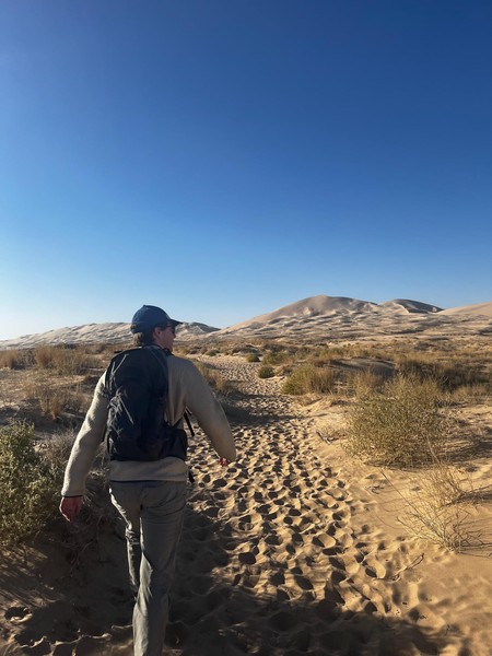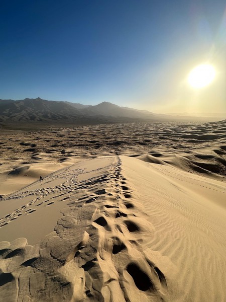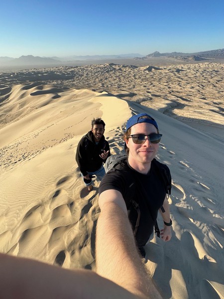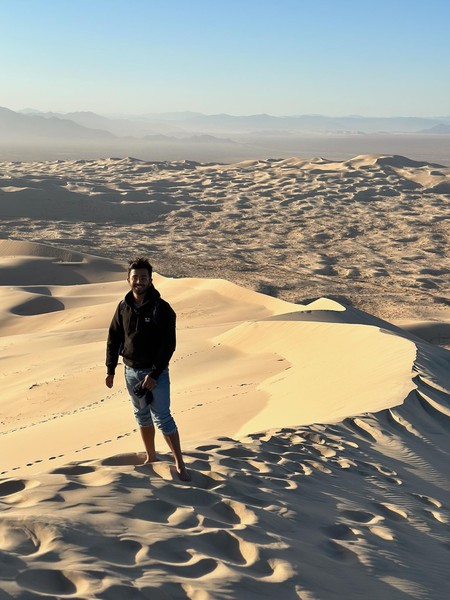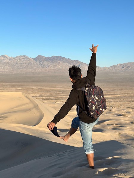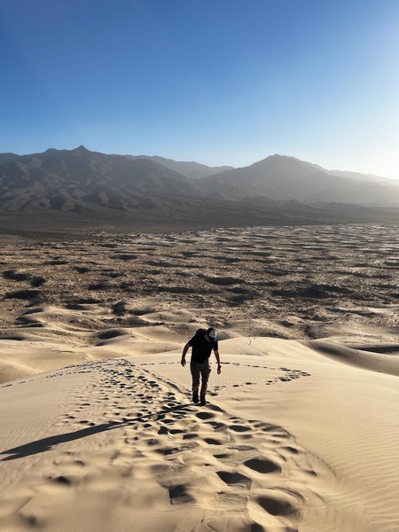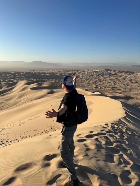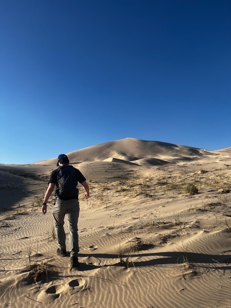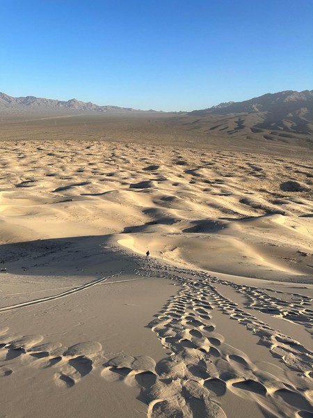 Set off in the morning after grabbing breakfast at a nearby diner. Drove a long way till we got to Kelso Dunes in the Mojave Desert. Spent some time hiking up the dunes and then running (falling) down. We caught the sunset here before heading back on t he road to drive to the Grand Caynon.