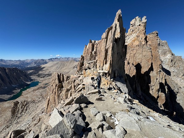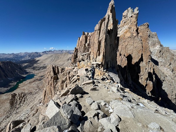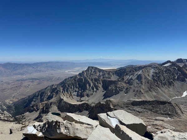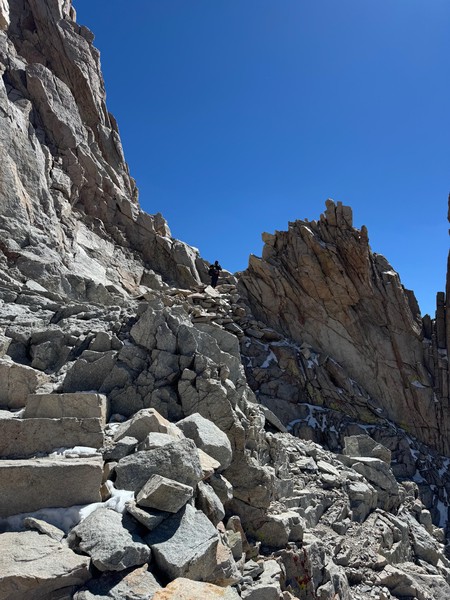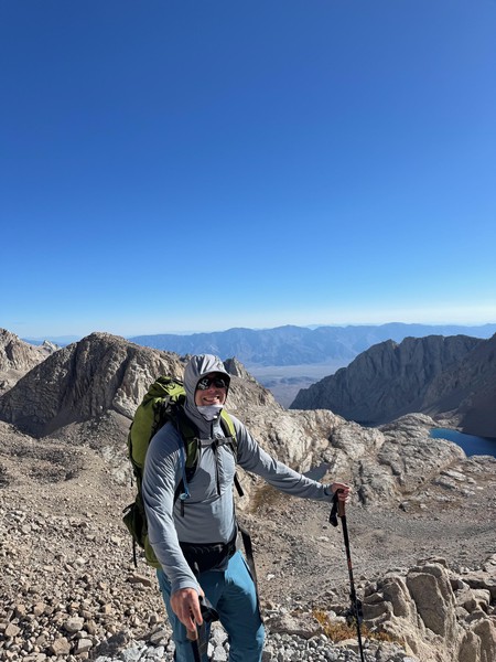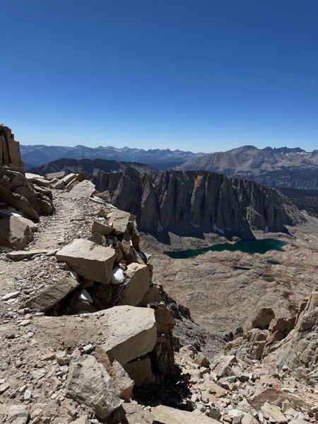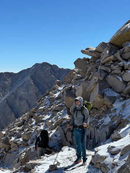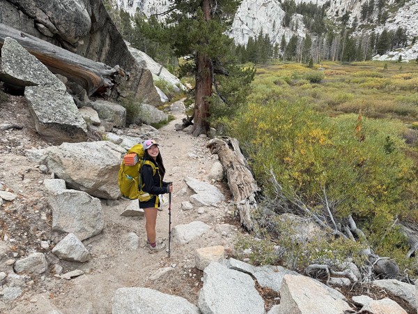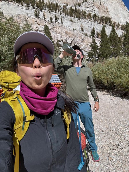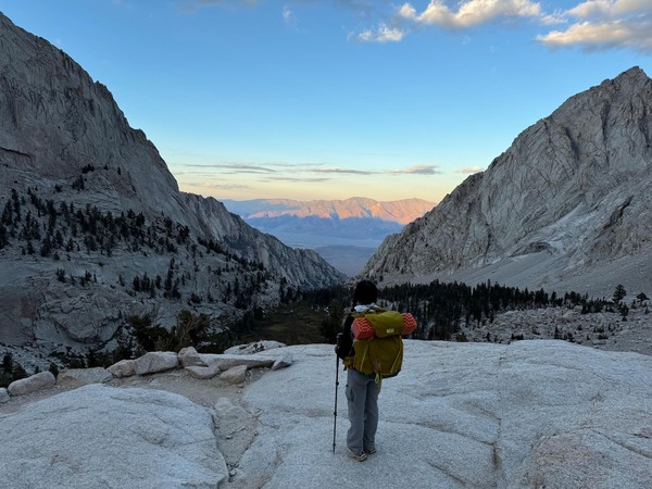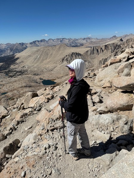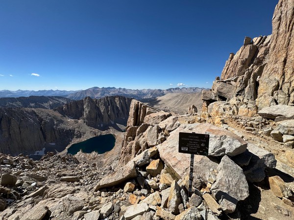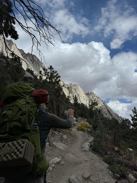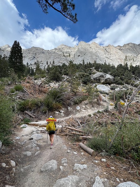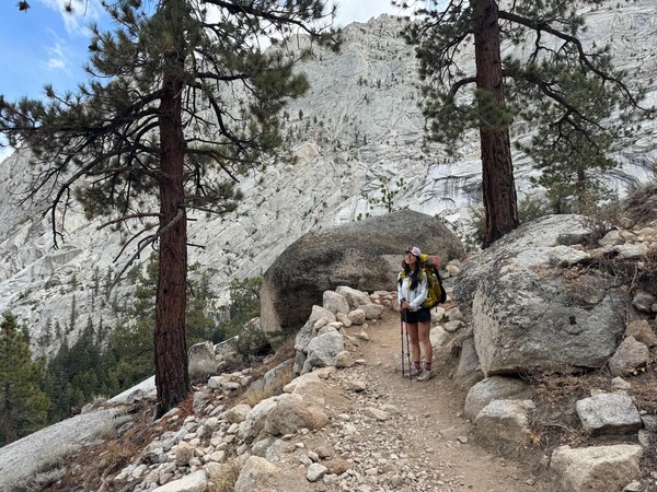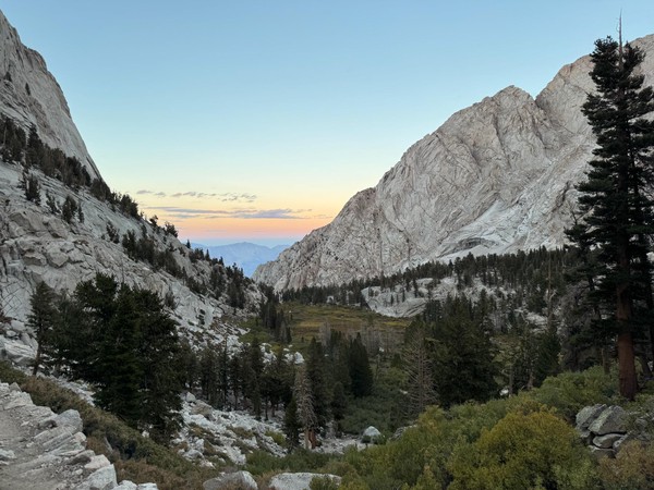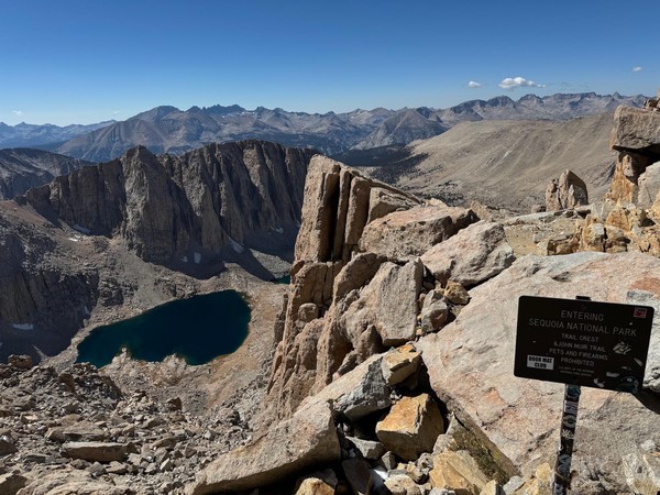 After having a quick breakfast we got ready and headed up for the summit. Within the first 1km we were way to hot and shed most of our layers. There were a bunch of switchbacks but before long we were at trail crest. Took a little break to enjoy the gorgeous views of Sequoia National Park.